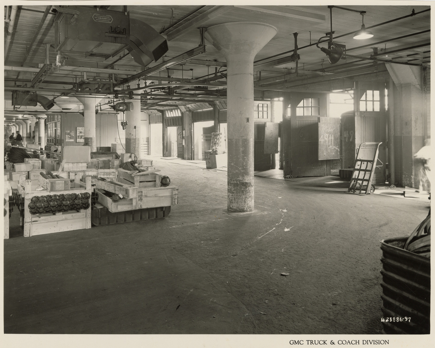 Interior, receiving dock at Service Building, Plant 4, GMC Truck & Coach Division factory