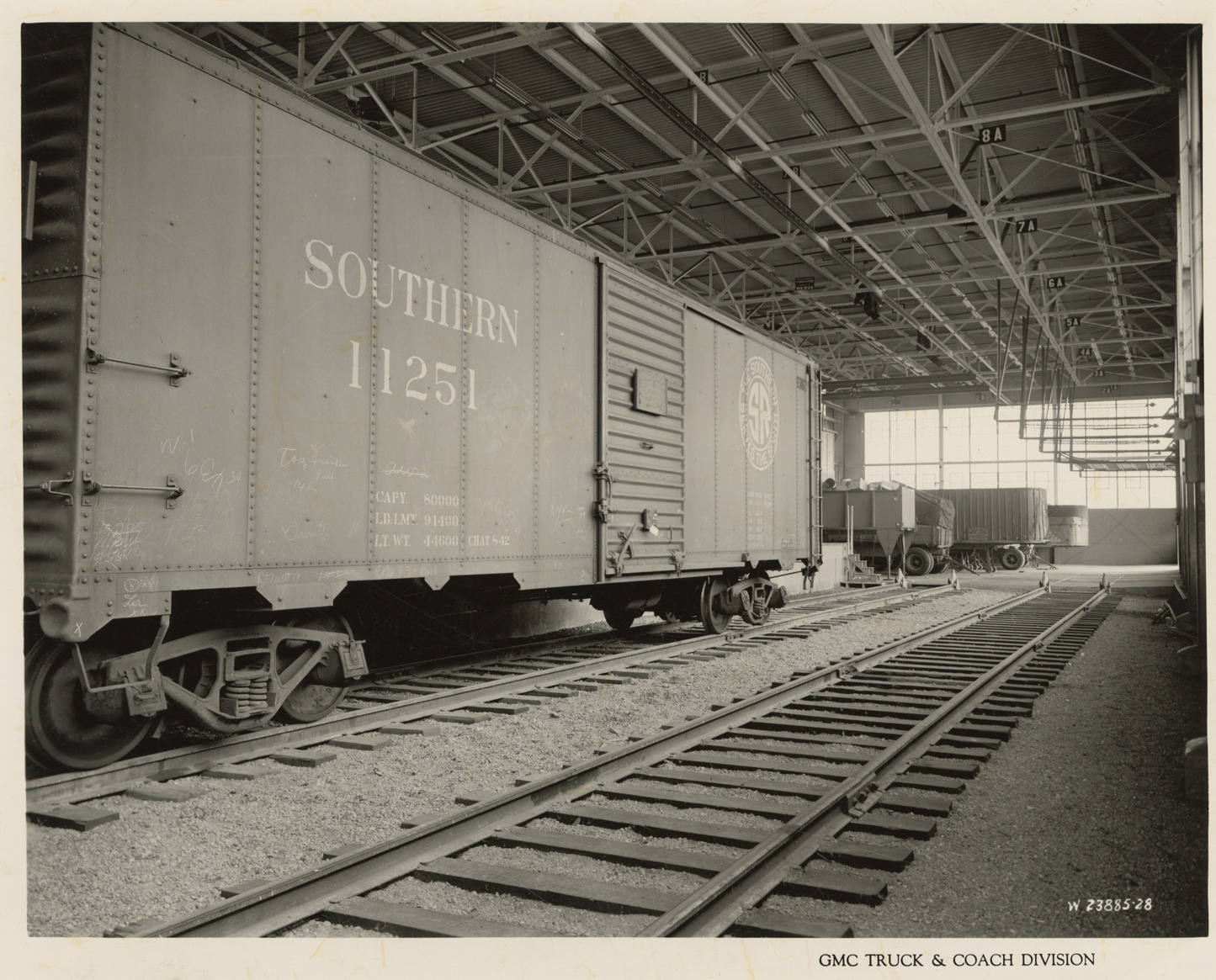 Southern Railway car in receiving well, Plant 4, GMC Truck & Coach Division factory