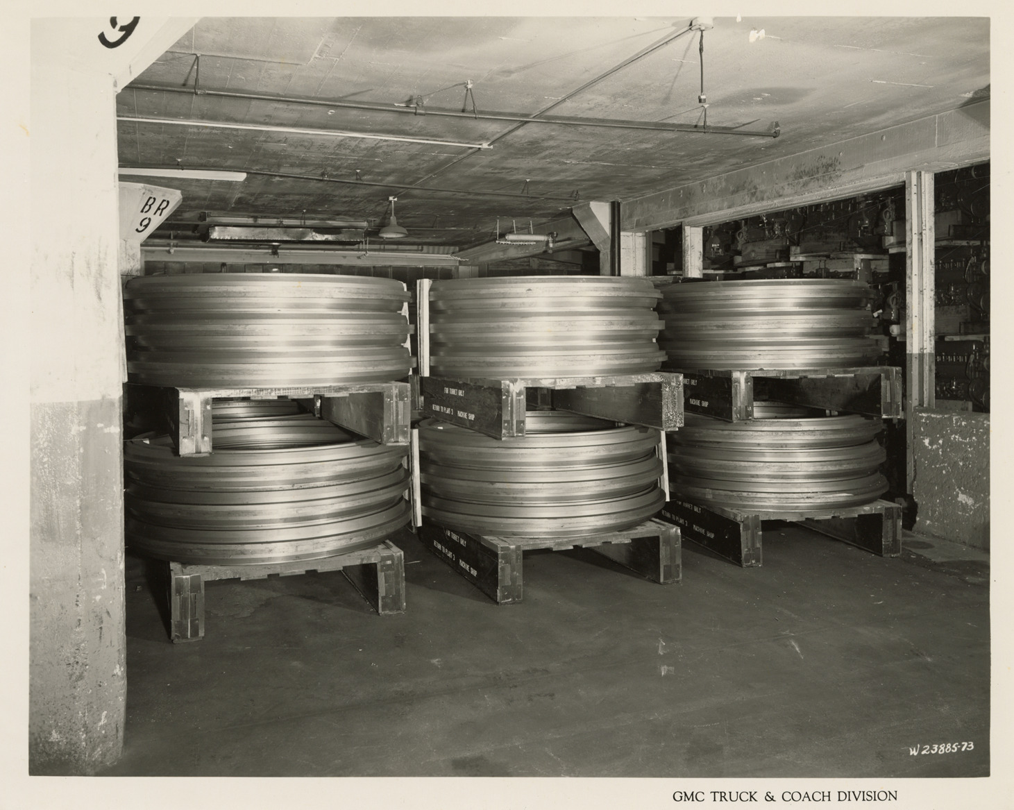 Armored car material in basement storage, Plant 3, GMC Truck & Coach Division factory