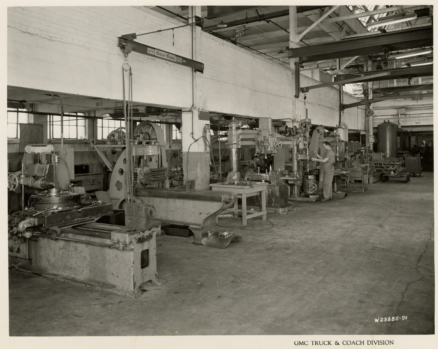 Favorite this☆ Worker in armored car machine shop, Plant 3, GMC Truck & Coach Division factory Description: View of worker operating machinery in armored car machine shop, Plant 3, Building 16, GMC Truck & Coach plant. Printed on front: "GMC Truck & Coach Division." Handwritten on back: "Plant 3, Bldg. 16. Armored car machine shop. Factories--GMC, ca. 1943." Details Resource ID: na050417 Subject: Armored cars (Military vehicles)--Michigan--Pontiac--Design and construction Machine shops--Michigan--Detroit Automobile industry workers--Michigan--Pontiac Automobile factories--Michigan--Pontiac GMC Truck & Coach Photographic prints Date Issued: 1943 (year approximate) Format: 1 photographic print ; 8 x 9.75 in. Member of: National Automotive History Collection Filing Location: Factories--GMC, ca. 1943, #8 Rights: Physical rights are retained by DPL. Copyright is retained in accordance with U.S. copyright laws.