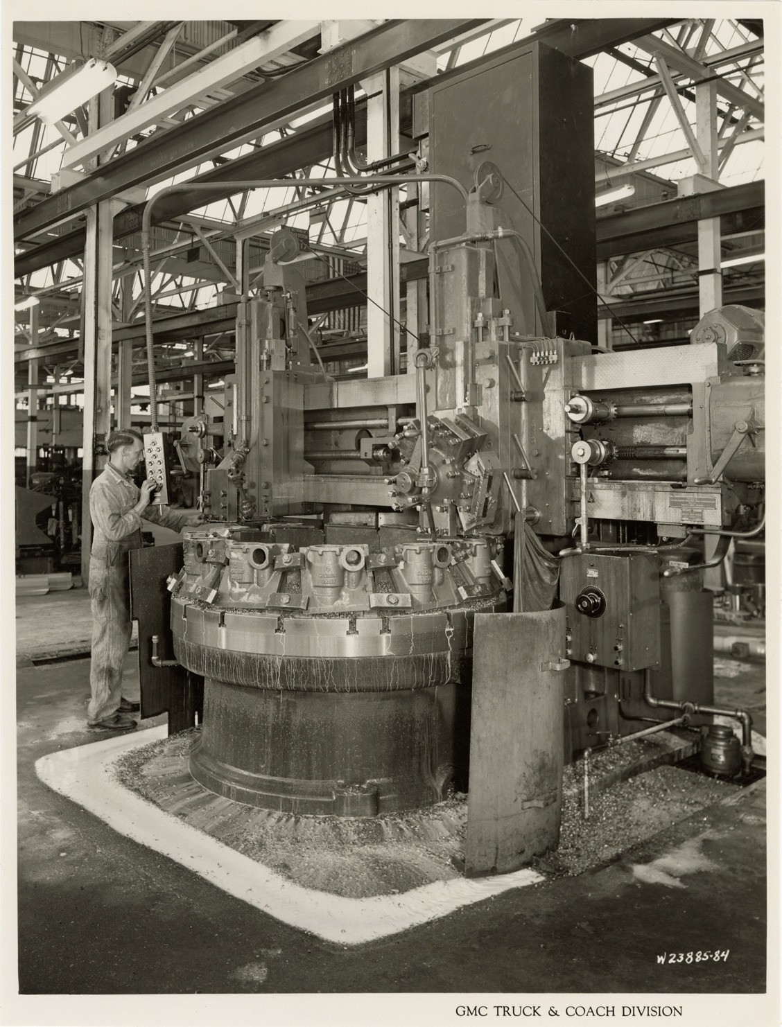 Favorite this☆ Worker in armored car machine shop, Plant 3, GMC Truck & Coach Division factory Description: View of worker operating machinery in armored car machine shop, Plant 3, Building 16, GMC Truck & Coach plant. Printed on front: "GMC Truck & Coach Division." Handwritten on back: "Plant 3, Bldg. 16. Armored car machine shop. Factories--GMC, ca. 1943." Details Resource ID: na050419 Subject: Armored cars (Military vehicles)--Michigan--Pontiac--Design and construction Machine shops--Michigan--Detroit Automobile industry workers--Michigan--Pontiac Automobile factories--Michigan--Pontiac GMC Truck & Coach Photographic prints Date Issued: 1943 (year approximate) Format: 1 photographic print ; 10 x 7.5 in. Member of: National Automotive History Collection Filing Location: Factories--GMC, ca. 1943, #8 Rights: Physical rights are retained by DPL. Copyright is retained in accordance with U.S. copyright laws.
