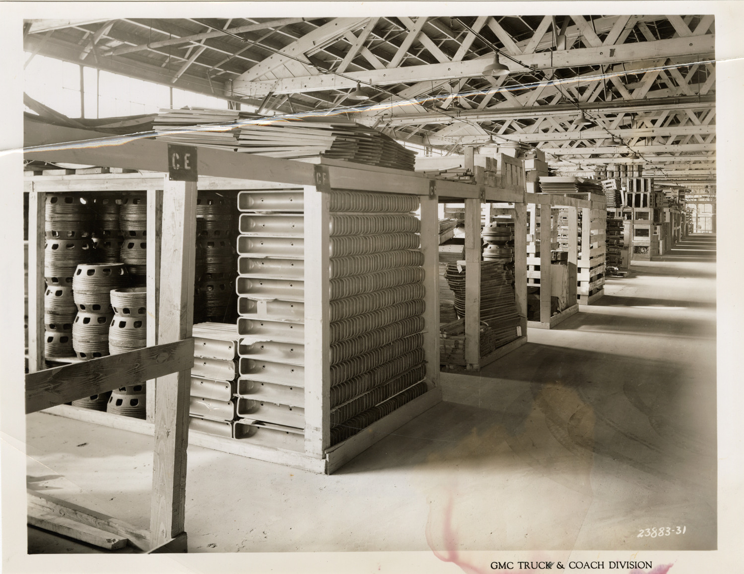 Favorite this☆ Surplus and Obsolete Stores stockroom, Plant 1, GMC Truck & Coach Division factory Description: View of the Surplus and Obsolete Stores stockroom, Plant 1, GMC Truck & Coach plant. Printed on front: "GMC Truck & Coach Division." Handwritten on back: "Plant 1. Surplus & Obsolete Stores. View of stock room looking north, surplus & obsolete materials. Factories--GMC, ca. 1943." Details Resource ID: na050454 Subject: Warehouses--Michigan--Pontiac Stores or stock-room keeping Automobile factories--Michigan--Pontiac GMC Truck & Coach Photographic prints Date Issued: 1943 (year approximate) Format: 1 photographic print ; 7.75 x 10 in. Member of: National Automotive History Collection Filing Location: Factories--GMC, ca. 1943, #10 Rights: Physical rights are retained by DPL. Copyright is retained in accordance with U.S. copyright laws.