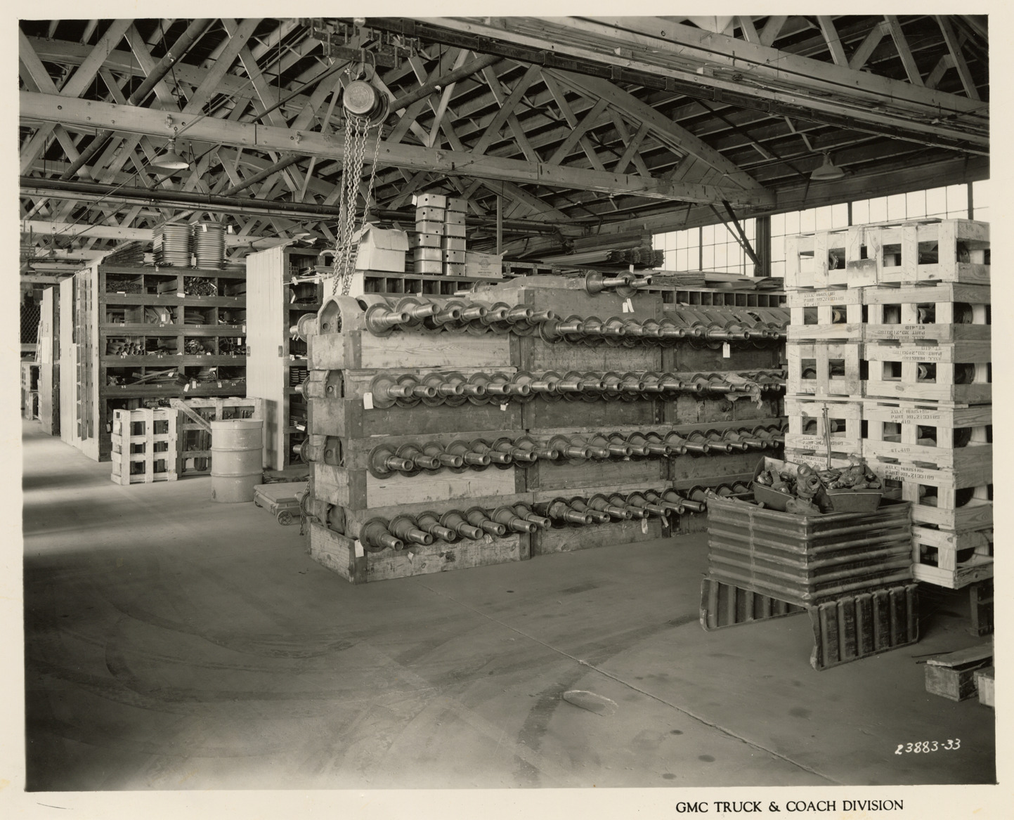 Favorite this☆ Surplus and Obsolete Stores stockroom, Plant 1, GMC Truck & Coach Division factory Description: View of the Surplus and Obsolete Stores stockroom, Plant 1, GMC Truck & Coach plant. Printed on front: "GMC Truck & Coach Division." Handwritten on back: "Plant 1. Surplus & Obsolete Stores. Stock room looking north. Factories--GMC, ca. 1943." Details Resource ID: na050456 Subject: Warehouses--Michigan--Pontiac Stores or stock-room keeping Automobile factories--Michigan--Pontiac GMC Truck & Coach Photographic prints Date Issued: 1943 (year approximate) Format: 1 photographic print ; 8 x 9.75 in. Member of: National Automotive History Collection Filing Location: Factories--GMC, ca. 1943, #10 Rights: Physical rights are retained by DPL. Copyright is retained in accordance with U.S. copyright laws.