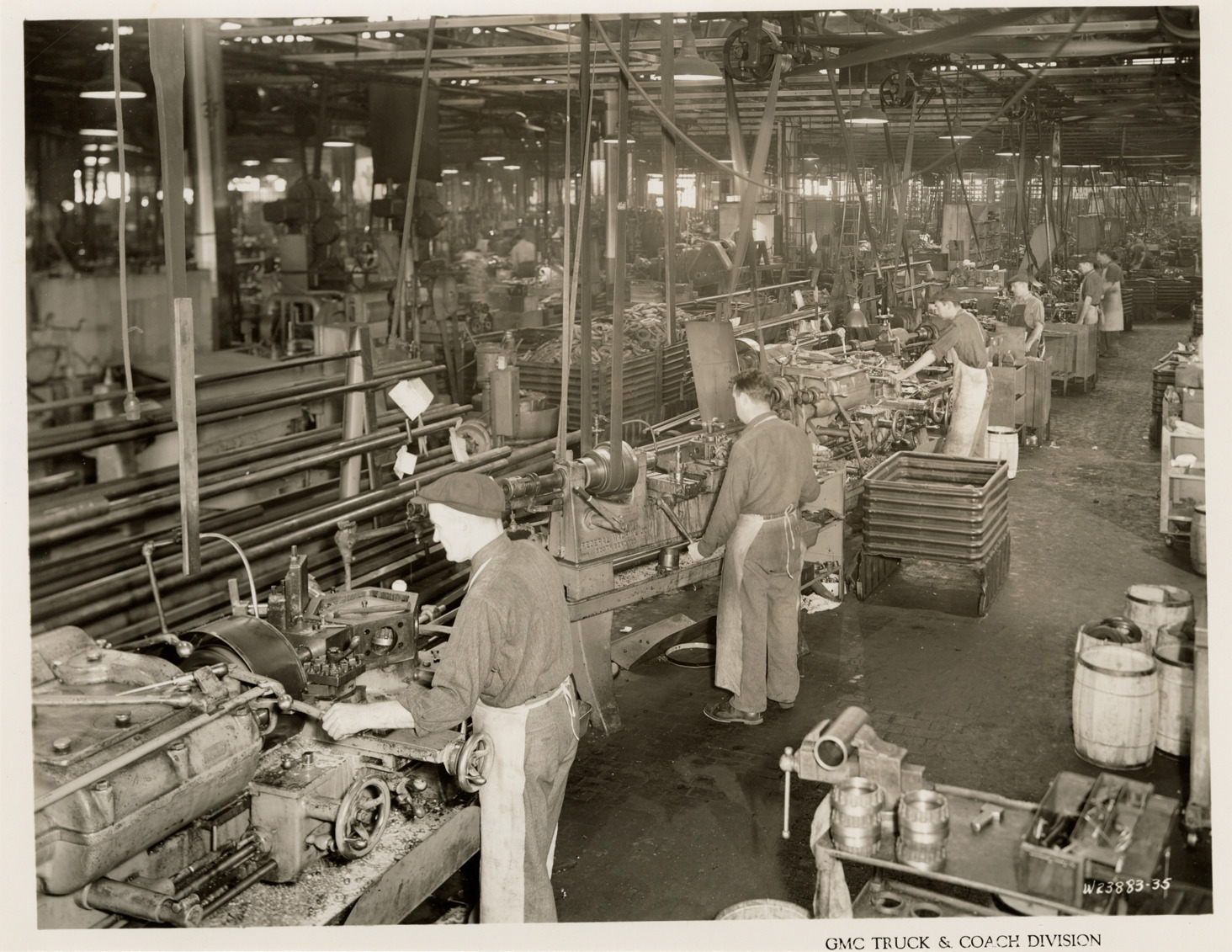 Workers operating lathes, Plant 1, GMC Truck & Coach Division factory