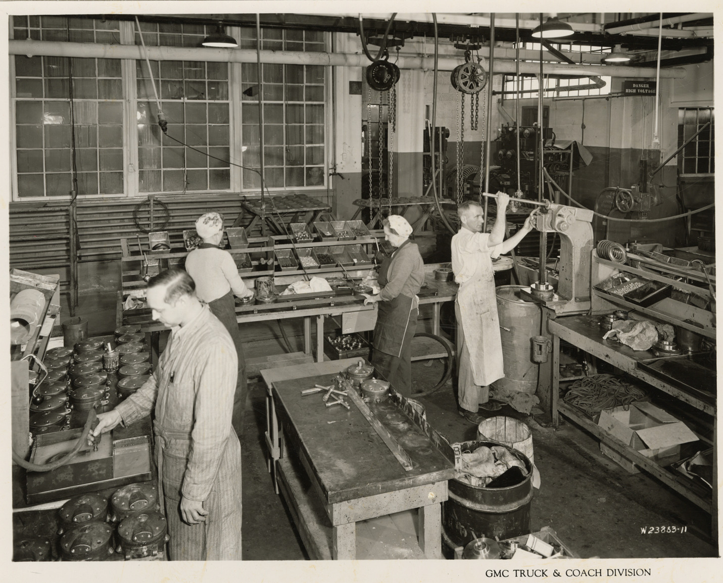 Men and women workers manufacturing DUKW parts, Plant 1, GMC Truck & Coach Division factory