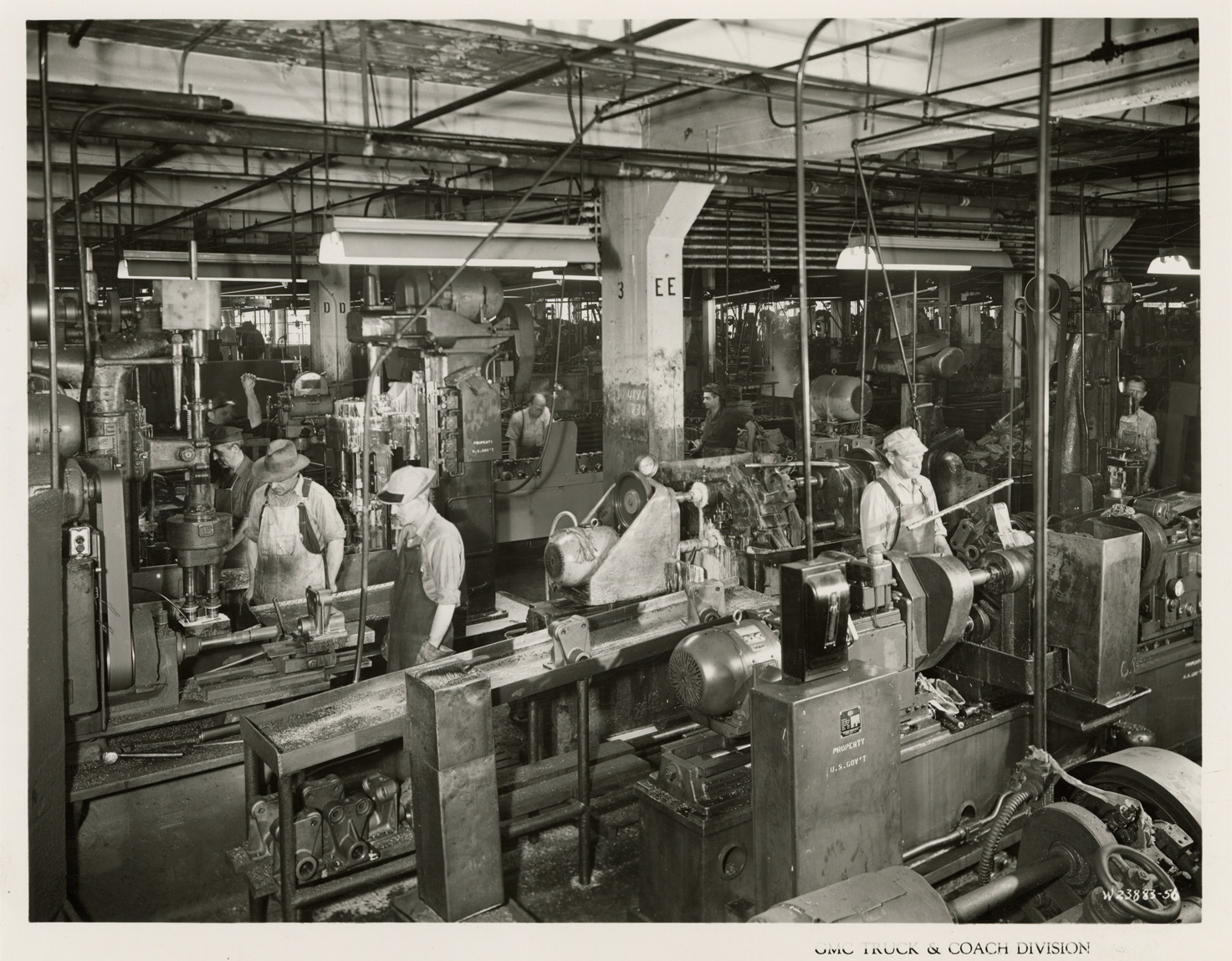 Favorite this☆ Workers in Buick machine shop, Plant 1, GMC Truck & Coach Division factory Description: View of workers in Buick machine shop at Plant 1, GMC Truck & Coach plant. Printed on front: "GMC Truck & Coach Division." Handwritten on back: "Plant 1, Dept. 6. Buick machine shop. In basement of Bldg. 4. Rear axle bracket 6 x 6 machining operations. Factories--GMC, ca. 1943." Details Resource ID: na050519 Subject: Automobile industry workers--Michigan--Pontiac Machine shops--Michigan--Pontiac Automobile factories--Michigan--Pontiac GMC Truck & Coach Photographic prints Date Issued: 1943 (year approximate) Format: 1 photographic print ; 8 x 9.5 in. Member of: National Automotive History Collection Filing Location: Factories--GMC, ca. 1943, #13 Rights: Physical rights are retained by DPL. Copyright is retained in accordance with U.S. copyright laws.