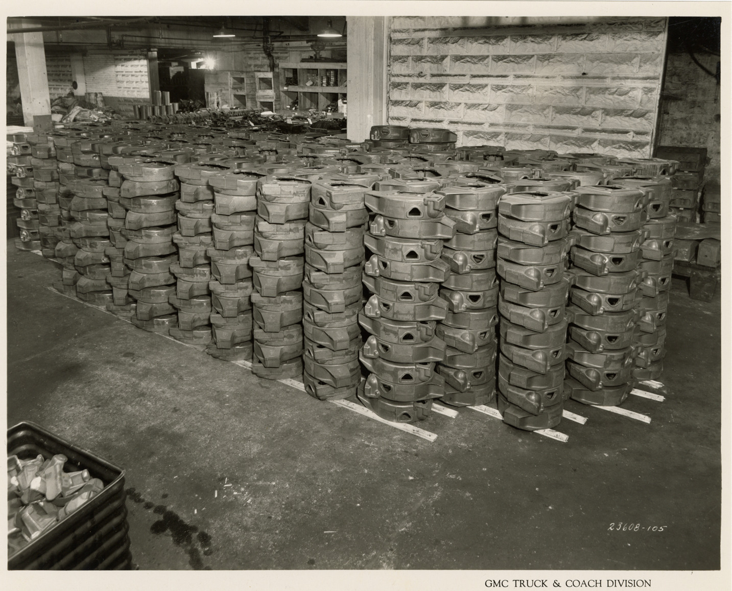 Favorite this☆ Rough stock in storage, Buick machine shop, Plant 1, GMC Truck & Coach Division factory Description: View of rough stock in storage in Buick machine shop at Plant 1, GMC Truck & Coach plant. Printed on front: "GMC Truck & Coach Division." Handwritten on back: "Plant 1, Dept. 6. Buick machine shop. In basement of Bldg. 4. Rough stock, Buick machine shop stores. Factories--GMC, ca. 1943." Details Resource ID: na050537 Subject: Warehouses--Michigan--Pontiac Machine shops--Michigan--Pontiac Automobile factories--Michigan--Pontiac GMC Truck & Coach Photographic prints Date Issued: 1943 (year approximate) Format: 1 photographic print ; 7.75 x 9.75 in. Member of: National Automotive History Collection Filing Location: Factories--GMC, ca. 1943, #14 Rights: Physical rights are retained by DPL. Copyright is retained in accordance with U.S. copyright laws.