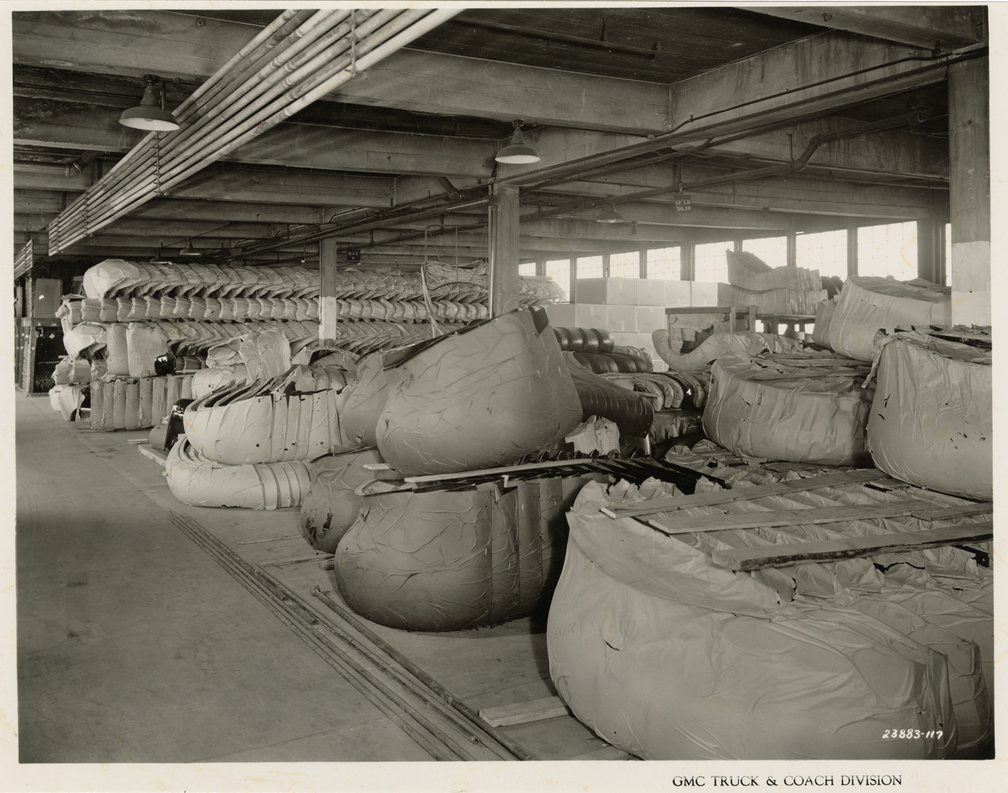 Fenders in Service Division stockroom, Plant 1, GMC Truck & Coach Division factory