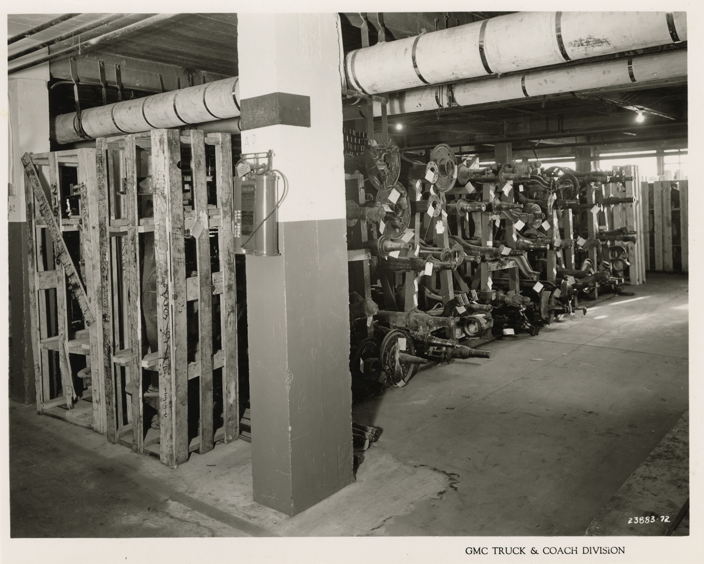 Axles in basement storage, Service Division, Plant 1, GMC Truck & Coach Division factory
