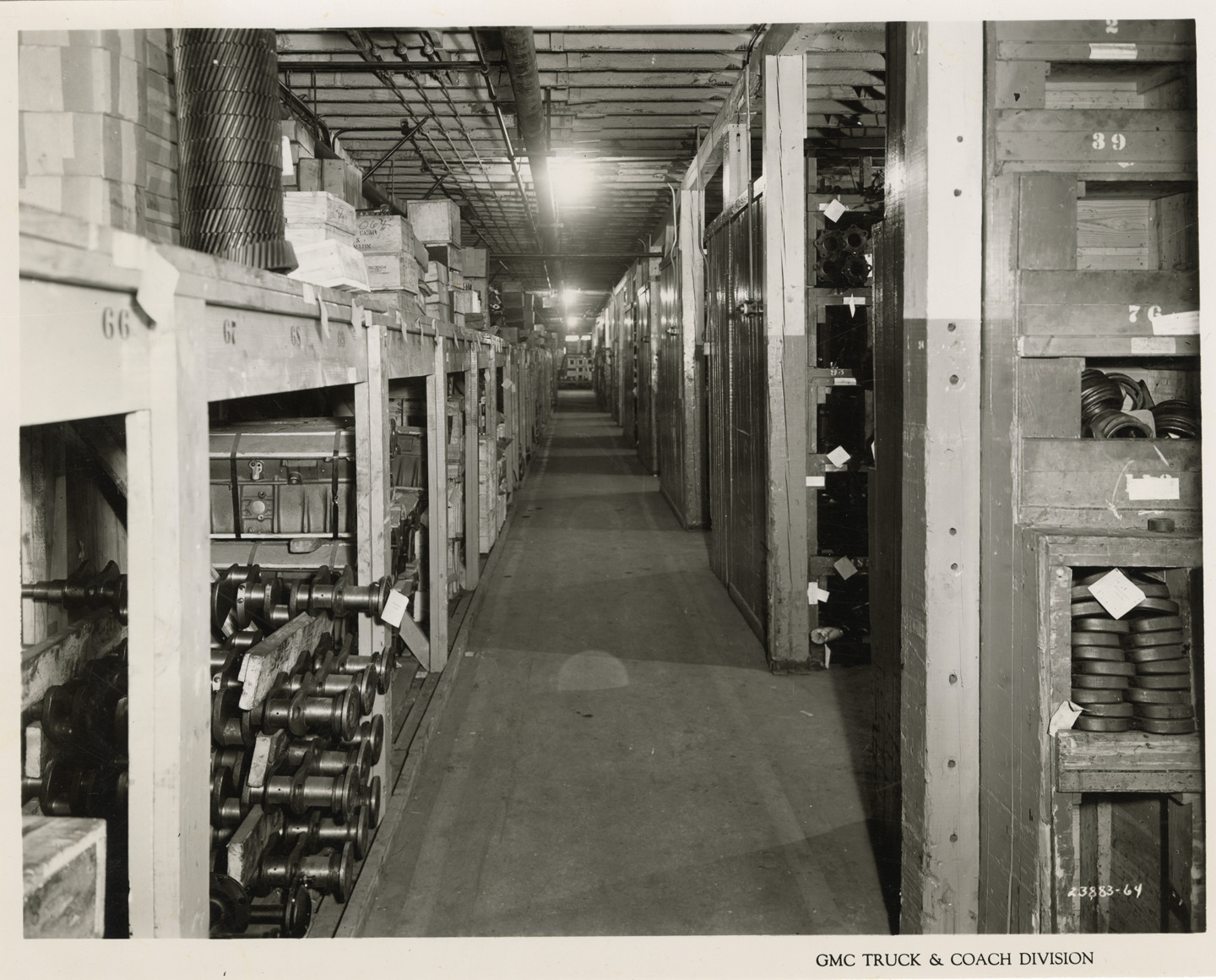 Material in first floor storage, Service Division, Plant 1, GMC Truck & Coach Division factory