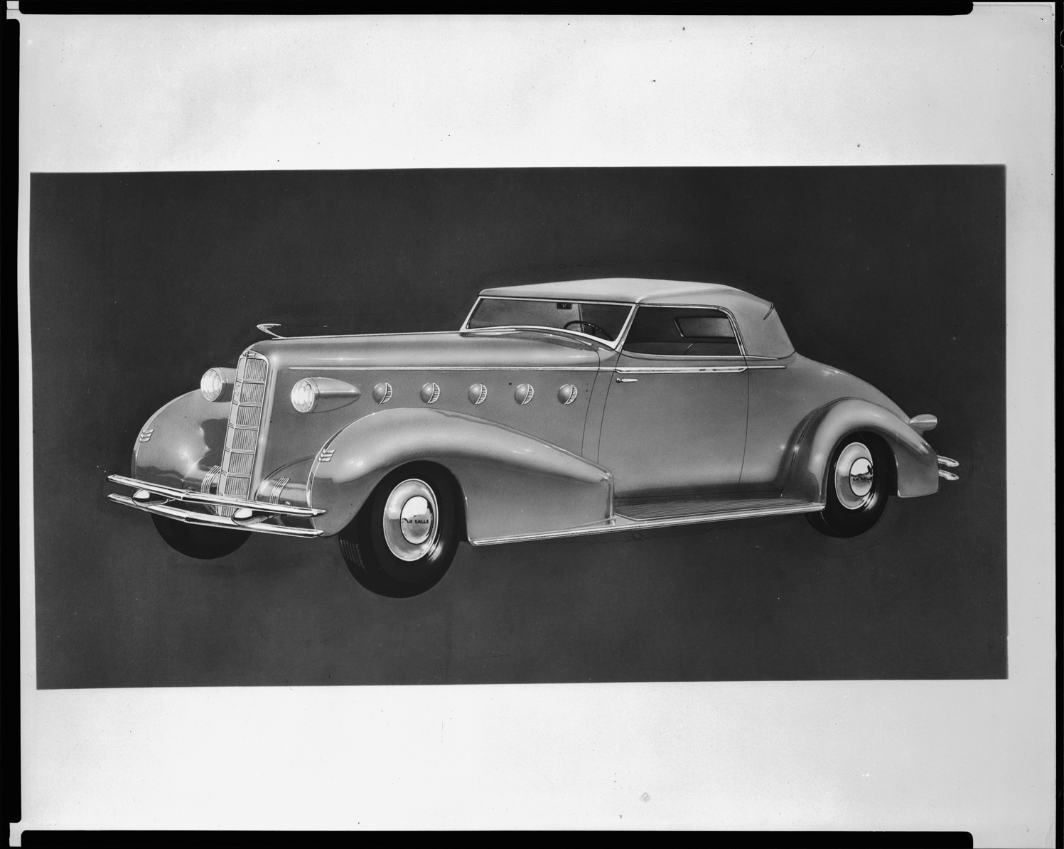 Favorite this☆ 1934 LaSalle automobile Description: Artist's depiction of a 1934 LaSalle convertible coupe. Handwritten on sleeve: "LaSalle, '34. Convert. coupe. Rendg." Details Resource ID: na050726 Subject: La Salle automobile Photography--Negatives Date Issued: Unknown year Format: 1 negative ; 8 x 10 in. Member of: National Automotive History Collection George Moffitt Photograph Collection Filing Location: LaSalle Rights: Physical rights are retained by DPL. Copyright is retained in accordance with U.S. copyright laws.