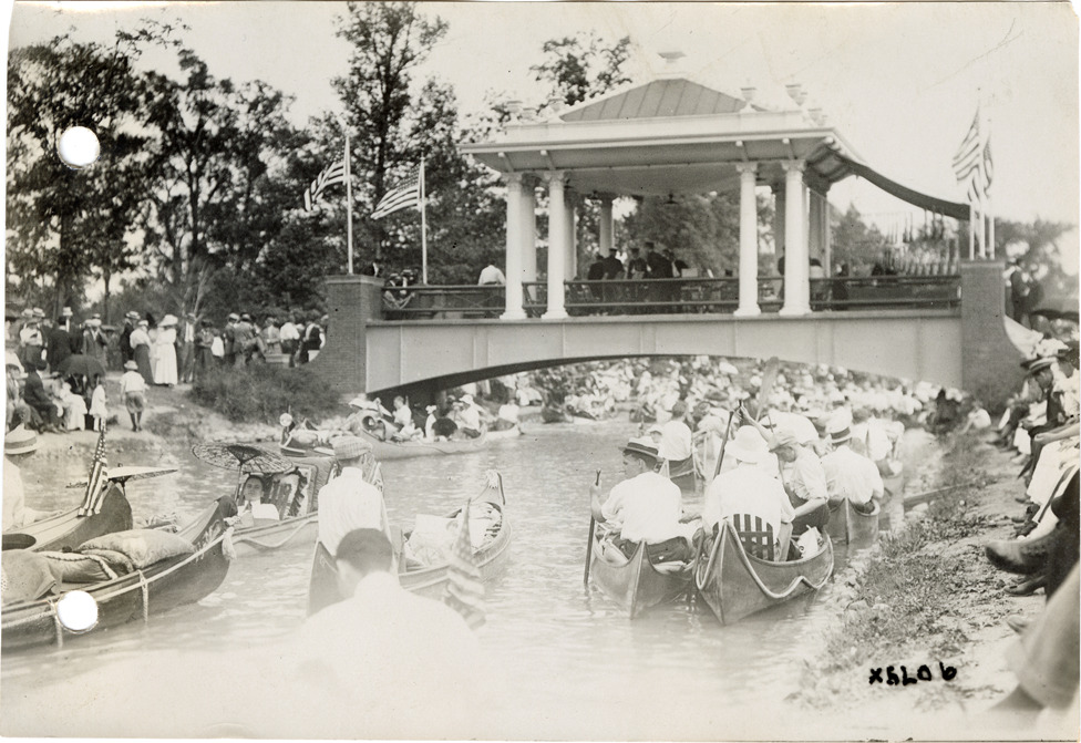 Favorite this☆ Canoeists near bandstand on Belle Isle during 1912 Cadillaqua Description: View of canoeists near bandstand on bridge at Belle Isle during the 1912 Cadillaqua celebration. Handwritten on back: "At Belle Isle during Cadillaqua, July, 1912." Details Resource ID: na050879 Subject: Canoeists--Michigan--Detroit Canoes and canoeing--Michigan--Detroit Bandstands--Michigan--Detroit Canals--Michigan--Detroit Belle Isle Park (Detroit, Mich.) Detroit (Mich.)--Anniversaries, etc. Photographic prints Date Issued: 1912-07 Format: 1 photographic print ; 4.5 x 6.5 in. Member of: National Automotive History Collection Lazarnick Collection Filing Location: Anniversaries--Cadillaqua, 1912, #6 Rights: Physical rights are retained by DPL. Copyright is retained in accordance with U.S. copyright laws.