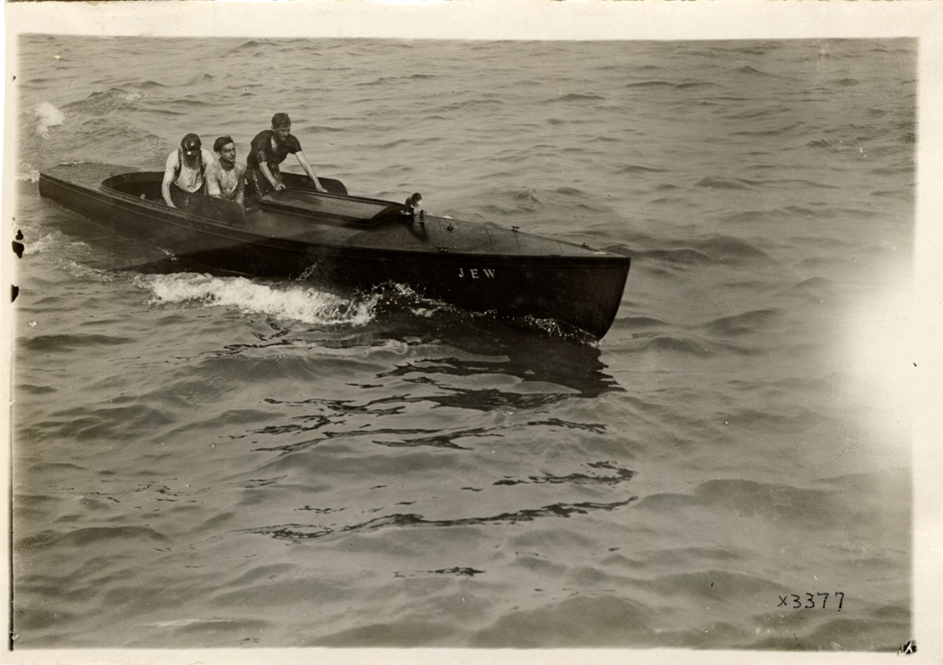 Favorite this☆ Driver and passengers in motorboat "Jew," 1911 Great Lakes League Championship Description: View of driver and passenger in motorboat "Jew" during the 1911 Great Lakes League Championship on Lake St. Clair. Details Resource ID: na050937 Subject: Motorboats Motorboat racing Saint Clair, Lake (Mich. and Ont.) Photographic prints Date Issued: 1911-08 Format: 1 photographic print ; 5 x 7 in. Member of: National Automotive History Collection Lazarnick Collection Filing Location: Boat races--Great Lakes League Championship, 1911, #1 Rights: Physical rights are retained by DPL. Copyright is retained in accordance with U.S. copyright laws.