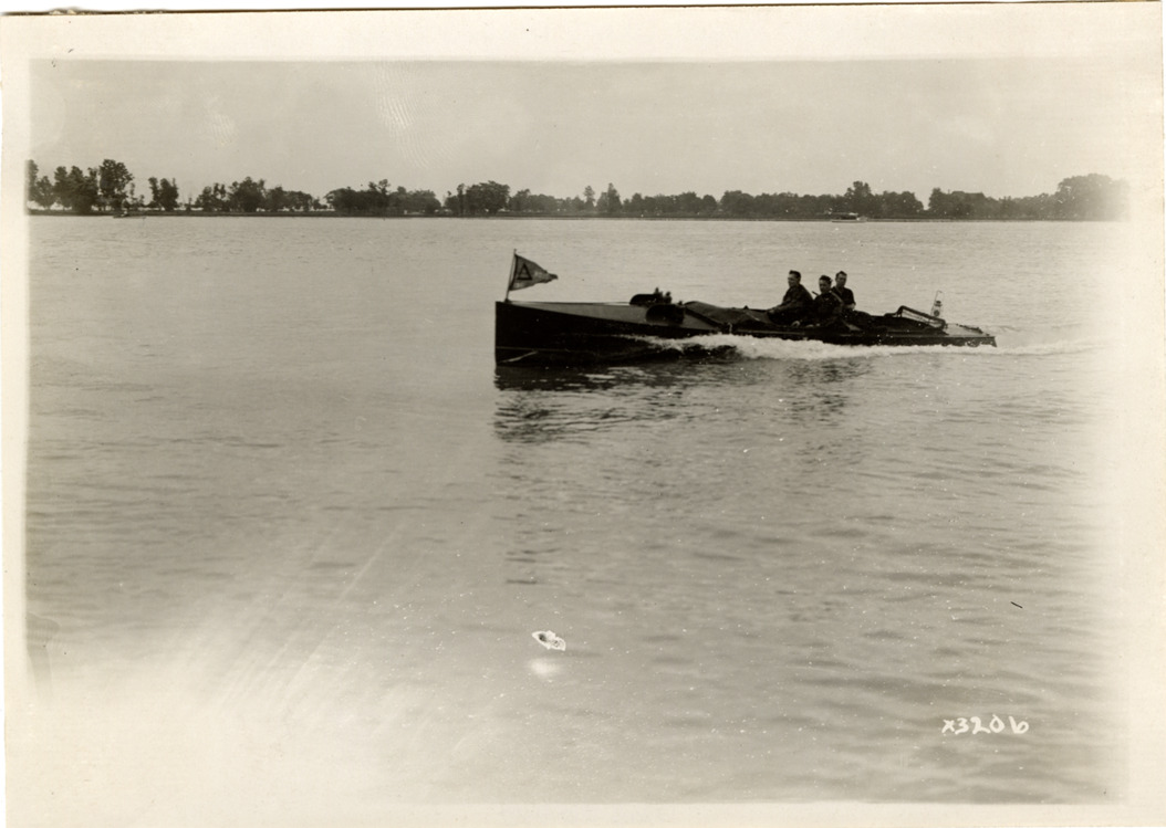 Driver and passengers in motorboat, 1911 Great Lakes League Championship