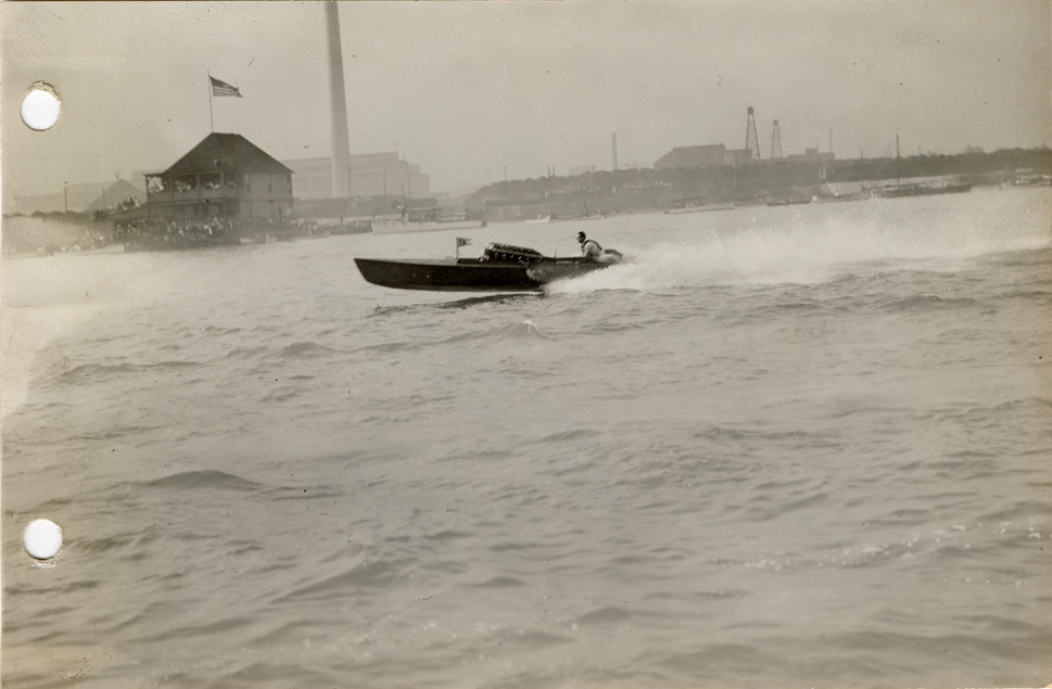 Favorite this☆ Motorboat "Can't Tell," Solvay Boat Club races Description: View of man in motorboat "Can't Tell" during the Solvay Boat Club races. Handwritten on back: "Van Blerck, Can't Tell." Details Resource ID: na050959 Subject: Motorboats Motorboat racing--Michigan--Detroit Van Blerck Motor Company Photographic prints Date Issued: 1911-09-24 Format: 1 photographic print ; 4.25 x 6.5 in. Member of: National Automotive History Collection Lazarnick Collection Filing Location: Boats and boating Rights: Physical rights are retained by DPL. Copyright is retained in accordance with U.S. copyright laws.