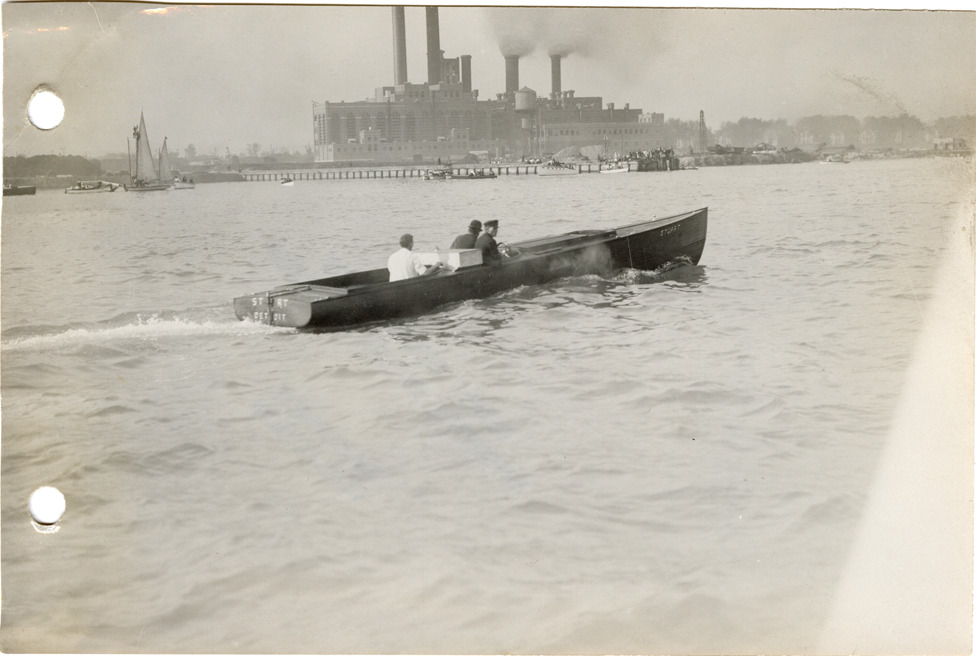 Favorite this☆ Motorboat "Stuart," Solvay Boat Club races Description: View of three men in motorboat "Stuart" during the Solvay Boat Club races. Handwritten on back: "Stuart winning 2nd in Class A handicap." Details Resource ID: na050960 Subject: Motorboats Motorboat racing--Michigan--Detroit Photographic prints Date Issued: 1911-09-24 Format: 1 photographic print ; 4.25 x 6.5 in. Member of: National Automotive History Collection Lazarnick Collection Filing Location: Boats and boating Rights: Physical rights are retained by DPL. Copyright is retained in accordance with U.S. copyright laws.