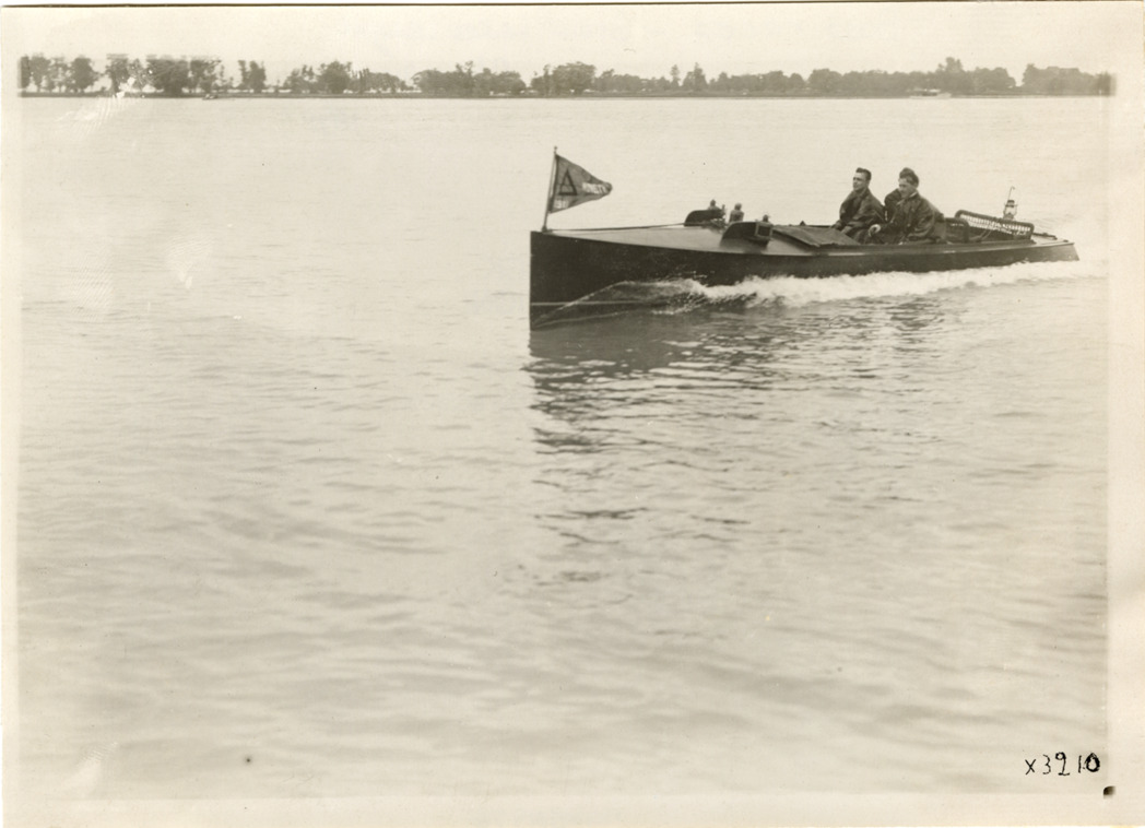 Favorite this☆ Driver and passengers in motorboat, 1911 Great Lakes League Championship Description: View of driver and passengers in motorboat during the 1911 Great Lakes League Championship on Lake St. Clair. Details Resource ID: na050976 Subject: Motorboats Motorboat racing Saint Clair, Lake (Mich. and Ont.) Photographic prints Date Issued: 1911-08 Format: 1 photographic print ; 5 x 7 in. Member of: National Automotive History Collection Lazarnick Collection Filing Location: Boat races--Great Lakes League Championship, 1911, #2 Rights: Physical rights are retained by DPL. Copyright is retained in accordance with U.S. copyright laws.