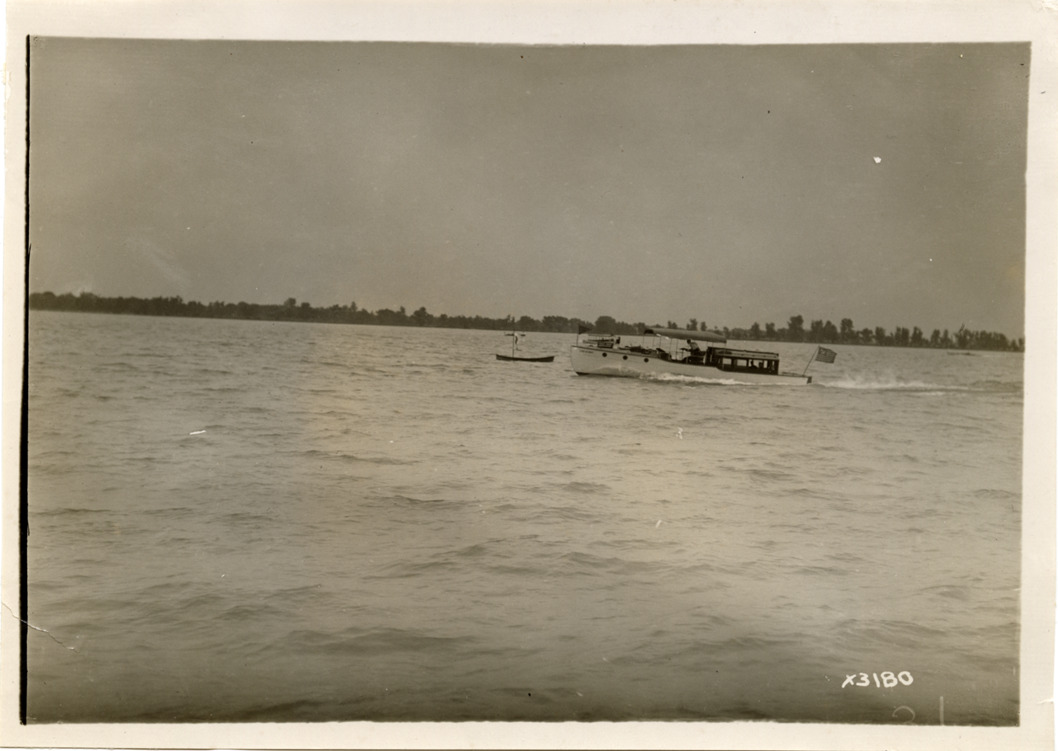 View of motorboat during the 1911 Great Lakes League Championship on Lake St. Clair.