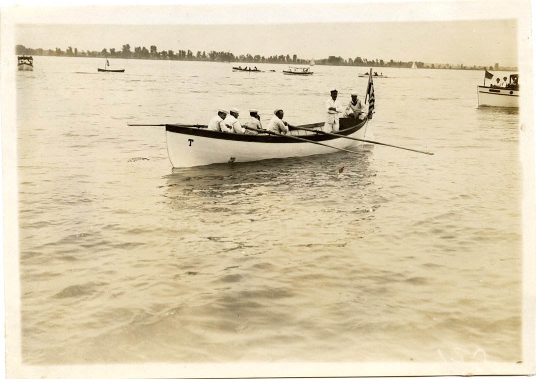 Sailors rowing boat, 1911 Great Lakes League Championship