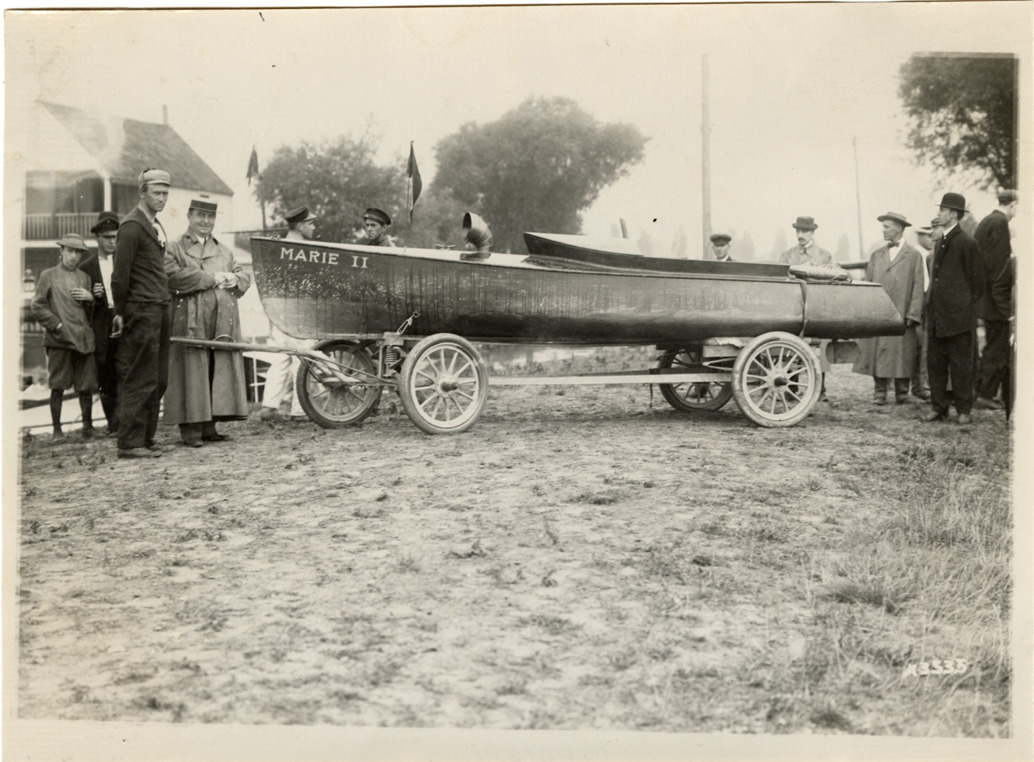 Favorite this☆ Men posing with motorboat "Marie II," 1911 Great Lakes League Championship Description: View of men posing with motorboat "Marie II" during the 1911 Great Lakes League Championship on Lake St. Clair. Details Resource ID: na051021 Subject: Motorboats Motorboat racing Saint Clair, Lake (Mich. and Ont.) Photographic prints Date Issued: 1911-08 Format: 1 photographic print ; 5 x 7 in. Member of: National Automotive History Collection Lazarnick Collection Filing Location: Boat races--Great Lakes League Championship, 1911, #2 Rights: Physical rights are retained by DPL. Copyright is retained in accordance with U.S. copyright laws.