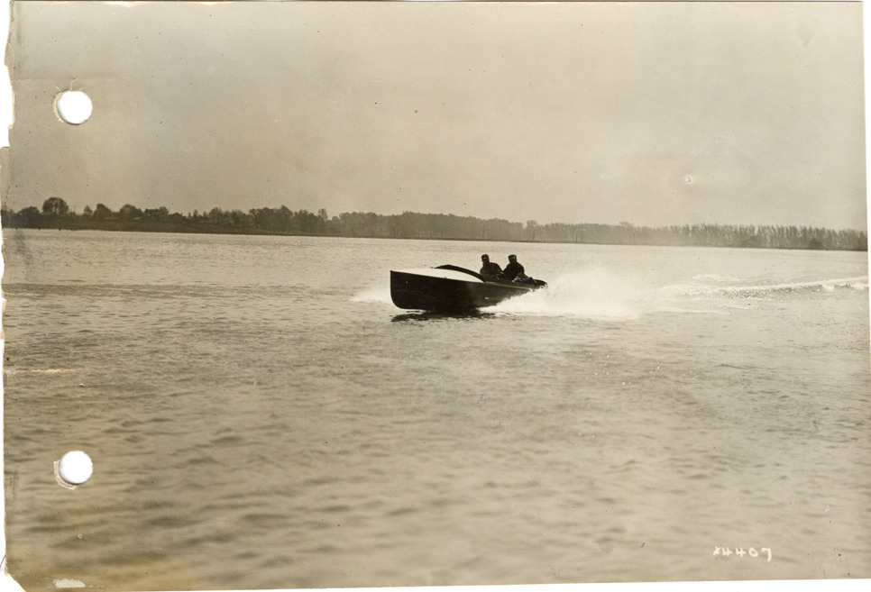 Favorite this☆ Motorboat "Thelma II" Description: View of two men in the motorboat "Thelma II." Stamped on back: "Spooner & Wells, Inc., photographers, 1231 Woodward Ave., Detroit, Mich., telephone North 1745." Handwritten on back: "Thelma II." Details Resource ID: na051024 Creator: Spooner & Wells Subject: Motorboats Thelma Motor Works Photographers--Michigan--Detroit Photographic prints Date Issued: Unknown year Format: 1 photographic print ; 4.5 x 6.5 in. Member of: National Automotive History Collection Lazarnick Collection Filing Location: Boats and boating--Thelma Motor Works Rights: Physical rights are retained by DPL. Copyright is retained in accordance with U.S. copyright laws.