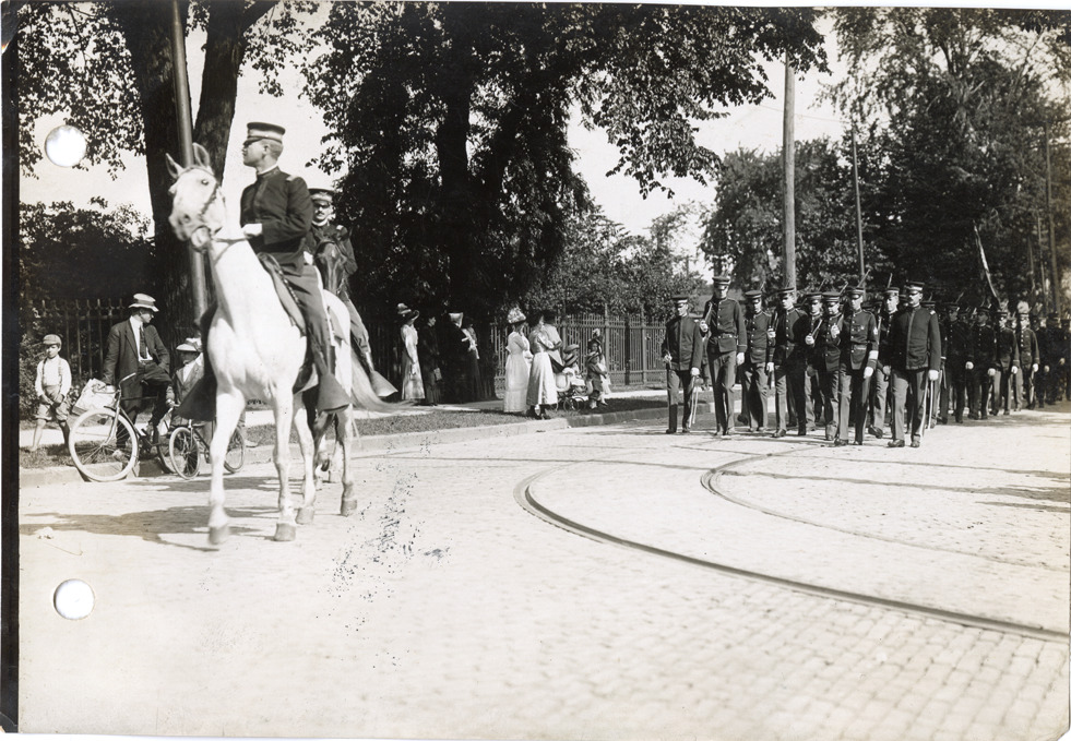 Favorite this☆ Funeral procession for General Henry M. Duffield Description: View of soldiers and men walking in funeral procession for General Henry M. Duffield. Soldiers on horseback in foreground. Handwritten on back: "Funeral procession of General Duffield, 1912." Details Resource ID: na051211 Subject: Duffield, Henry M. (Henry Martyn), 1842-1912--Death and burial Funeral rites and customs--Michigan--Detroit Soldiers--Michigan--Detroit Horses--Michigan--Detroit Photographic prints Date Issued: 1912-07 Format: 1 photographic print ; 4.5 x 6.5 in. Member of: National Automotive History Collection Lazarnick Collection Filing Location: Funerals Rights: Physical rights are retained by DPL. Copyright is retained in accordance with U.S. copyright laws.