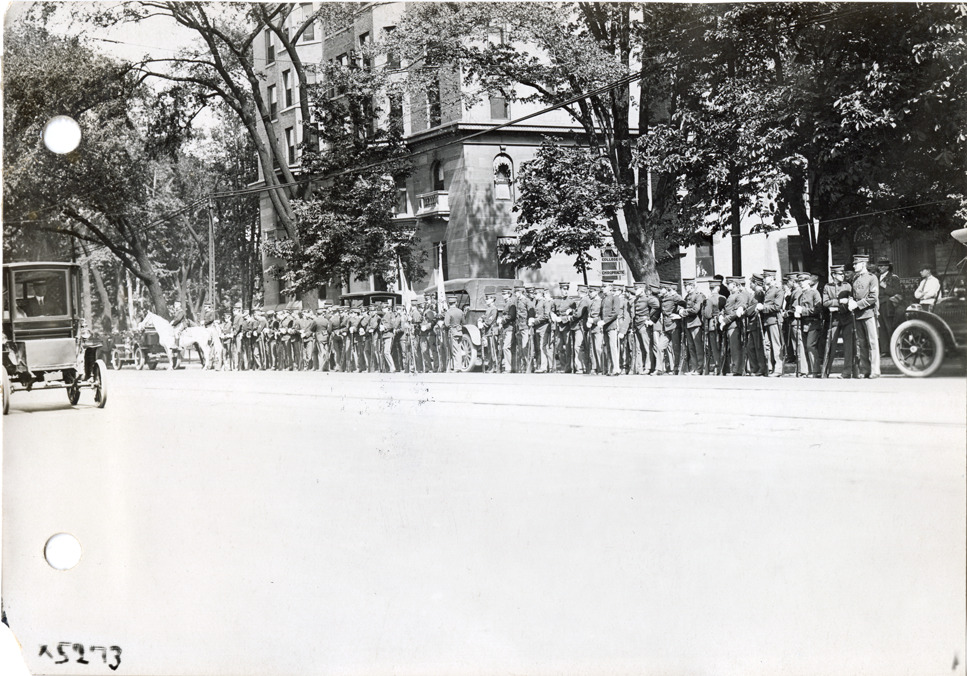 Favorite this☆ Funeral procession for General Henry M. Duffield Description: View of soldiers in funeral procession for General Henry M. Duffield. Handwritten on back: "Funeral procession of Gen. Duffield, 1912." Details Resource ID: na051215 Subject: Duffield, Henry M. (Henry Martyn), 1842-1912--Death and burial Funeral rites and customs--Michigan--Detroit Soldiers--Michigan--Detroit Photographic prints Date Issued: 1912-07 Format: 1 photographic print ; 4.5 x 6.5 in. Member of: National Automotive History Collection Lazarnick Collection Filing Location: Funerals Rights: Physical rights are retained by DPL. Copyright is retained in accordance with U.S. copyright laws.