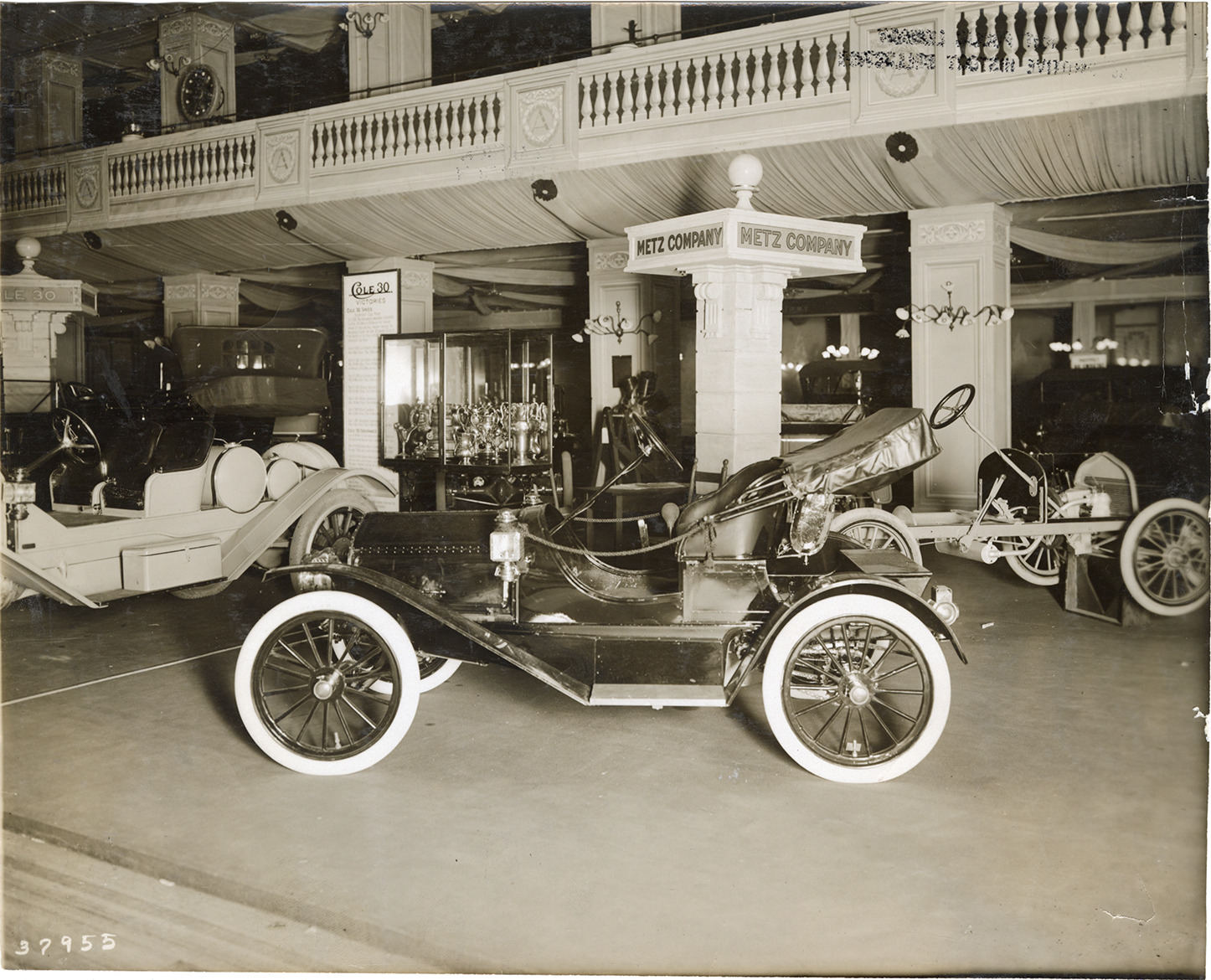 Favorite this☆ 1911 Metz automobiles at trade show Description: View of 1911 Metz cars and chassis on exhibit at trade show. "Metz Company" sign in background. Stamped on back: "Spooner & Wells, Inc., photographers, telephones 3472-3473 Columbus, 1931 Broadway, New York." Handwritten on back: "Metz, 1911." Details Resource ID: na051259 Creator: Spooner & Wells Subject: Automobiles Automobiles--Chassis Metz Company (Waltham, Mass.) Trade shows Photographers--New York (State)--New York Photographic prints Date Issued: 1911 (year approximate) Format: 1 photographic print ; 7.75 x 9.5 in. Member of: National Automotive History Collection Lazarnick Collection Filing Location: Metz Rights: Physical rights are retained by DPL. Copyright is retained in accordance with U.S. copyright laws.