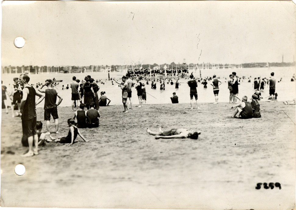 Favorite this☆ Swimmers on beach, Belle Isle Description: View of swimmers on beach at Belle Isle. Handwritten on back: "On Belle Isle, 1912." Details Resource ID: na051286 Subject: Beaches--Michigan--Detroit Swimmers--Michigan--Detroit Belle Isle Park (Detroit, Mich.) Photographic prints Date Issued: 1912 Format: 1 photographic print ; 4.5 x 6.5 in. Member of: National Automotive History Collection Lazarnick Collection Filing Location: Parks--Belle Isle Rights: Physical rights are retained by DPL. Copyright is retained in accordance with U.S. copyright laws.