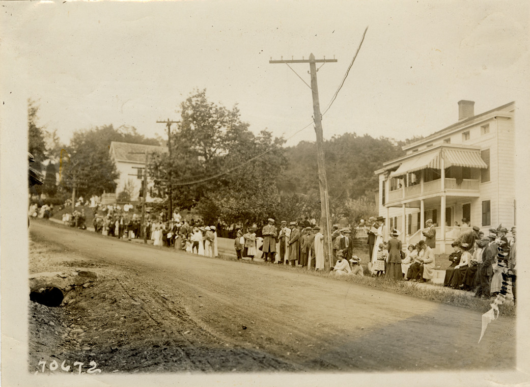Spectators on roadside, 1911 Algonquin Hill Climb
