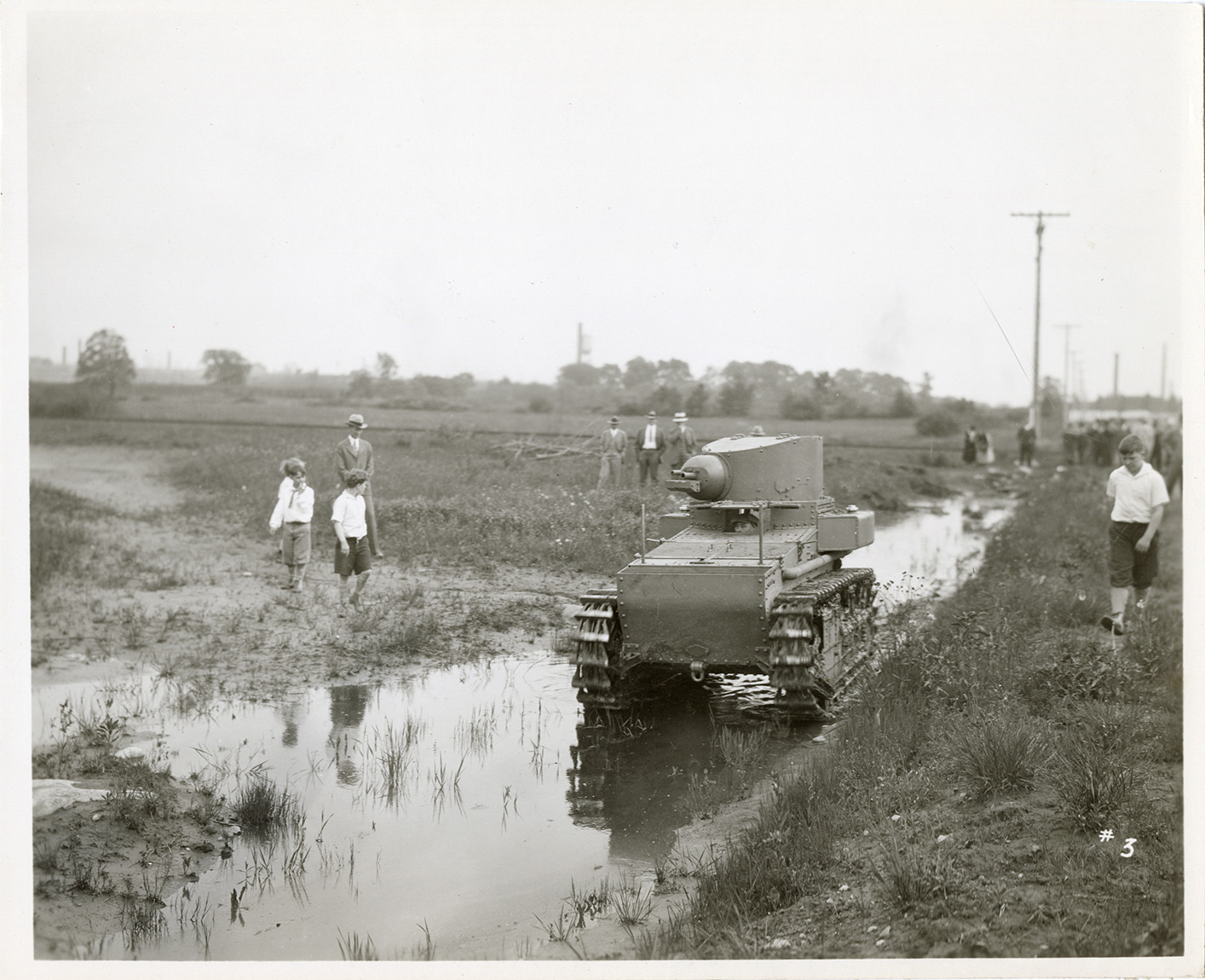 Favorite this☆ Men and boys watching Cunningham T1 tank traverse a ditch Description: View of several men and boys watching a Cunningham T1 tank traverse a water-filled ditch. Details Resource ID: na051375 Subject: Tanks (Military science) James Cunningham, Son & Company Ditches Photographic prints Date Issued: Unknown year Format: 1 photographic print mounted on fabric ; 7.75 x 9.5 in. Member of: National Automotive History Collection Filing Location: Military vehicles--Cunningham Rights: Physical rights are retained by DPL. Copyright is retained in accordance with U.S. copyright laws.