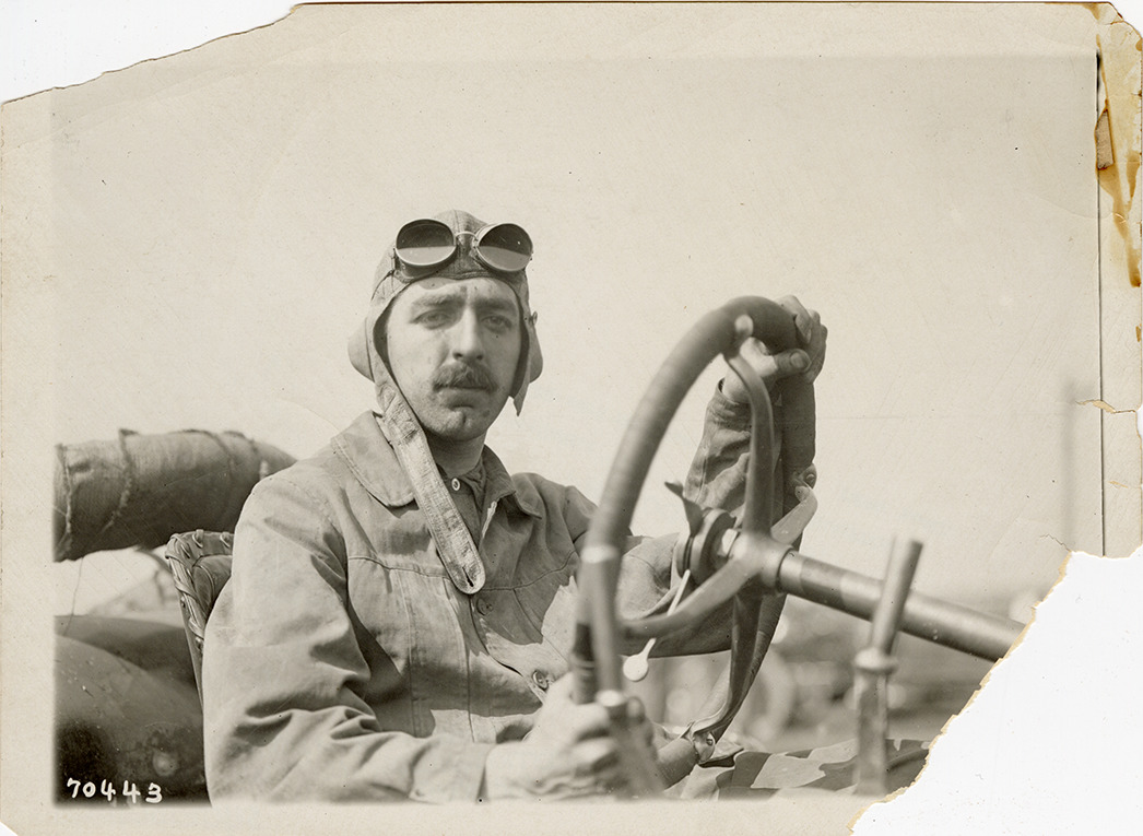 View of Harry Cobe posing in unidentified car during the Brighton Beach races in New York. Stamped on back: "Spooner & Wells, Inc., photographers, telephones 3472-3473 Columbus, 1931 Broadway, New York." Handwritten on back: "Harry Cobe. Brighton Beach, July 3-11."
