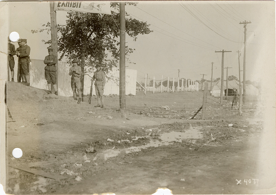 Soldiers guarding racetrack, Michigan State Fairgrounds