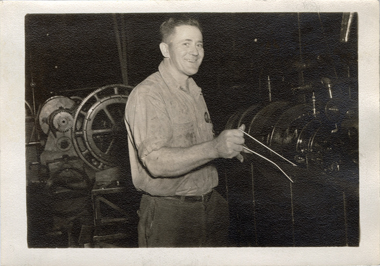 Favorite this☆ Worker, Timken Roller Bearing Company Description: Portrait of an unidentified man at the Timken Roller Bearing Company in Canton, Ohio. Worker poses next to machinery. Timken was a major producer of bearings for the war effort. Details Resource ID: na051501 Subject: Timken Roller Bearing Company--Employees Timken Roller Bearing Company Automobile industry workers--Ohio--Canton Men--Ohio--Canton--Portraits Factories--Ohio--Canton Photographic prints Date Issued: 1944 to 1945 Format: 1 photographic print ; 3.5 x 5 in. Member of: National Automotive History Collection Filing Location: Factories--Timken Rights: Physical rights are retained by DPL. Copyright is retained in accordance with U.S. copyright laws.