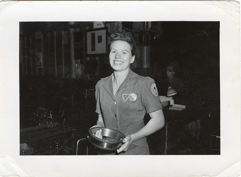 Portrait of an unidentified woman worker at the Timken Roller Bearing Company in Canton, Ohio. Timken was a major producer of bearings for the war effort.
