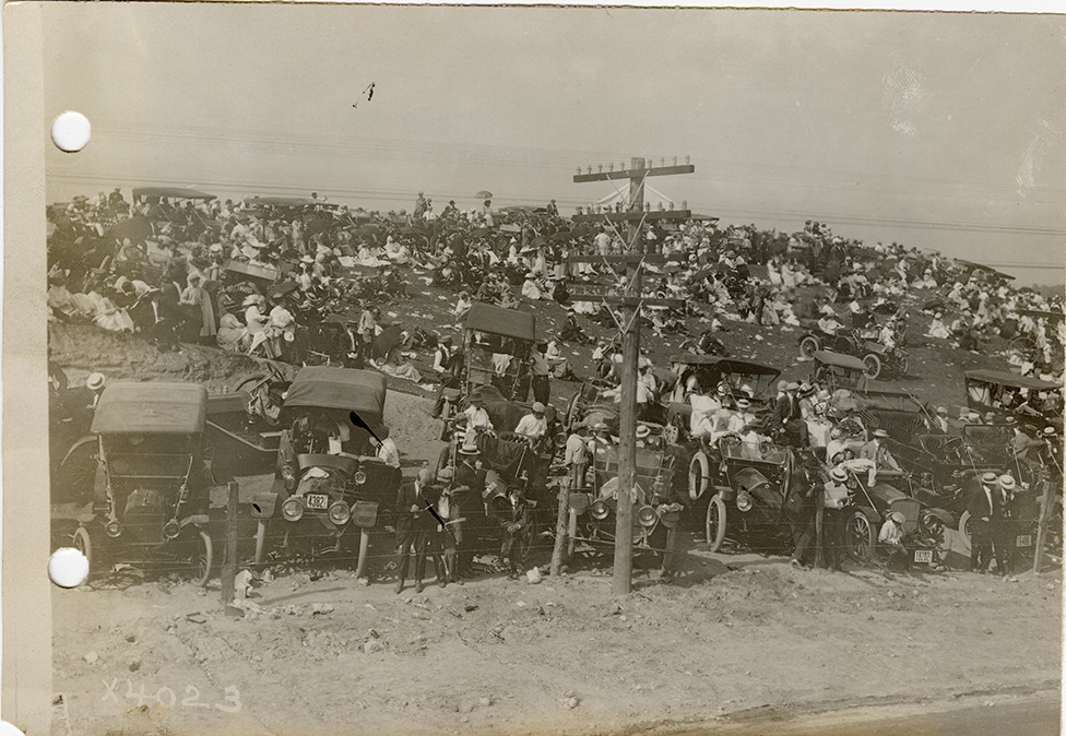 Crowd on Britton Hill, 1911 Elgin National Stock Chassis races