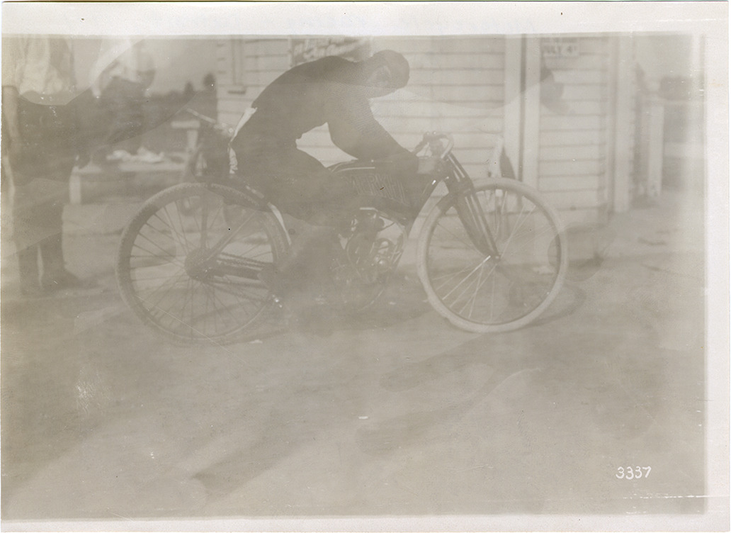 Favorite this☆ Motorcyclist posing on motorcycle, 1911 Michigan State Fairgrounds meet Description: View of a motorcyclist posing on motorcycle in front of judges' stand during the 1911 meet held at the Michigan State Fairgrounds. Details Resource ID: na051632 Subject: Motorcyclists--Michigan--Detroit Motorcycles, Racing--Michigan--Detroit Motorcycle racing--Michigan--Detroit Michigan State Fair Photographic prints Date Issued: 1911 Format: 1 photographic print ; 5 x 7 in. Member of: National Automotive History Collection Lazarnick Collection Filing Location: Motorcycle racing--Detroit, Michigan, 1911 Rights: Physical rights are retained by DPL. Copyright is retained in accordance with U.S. copyright laws.