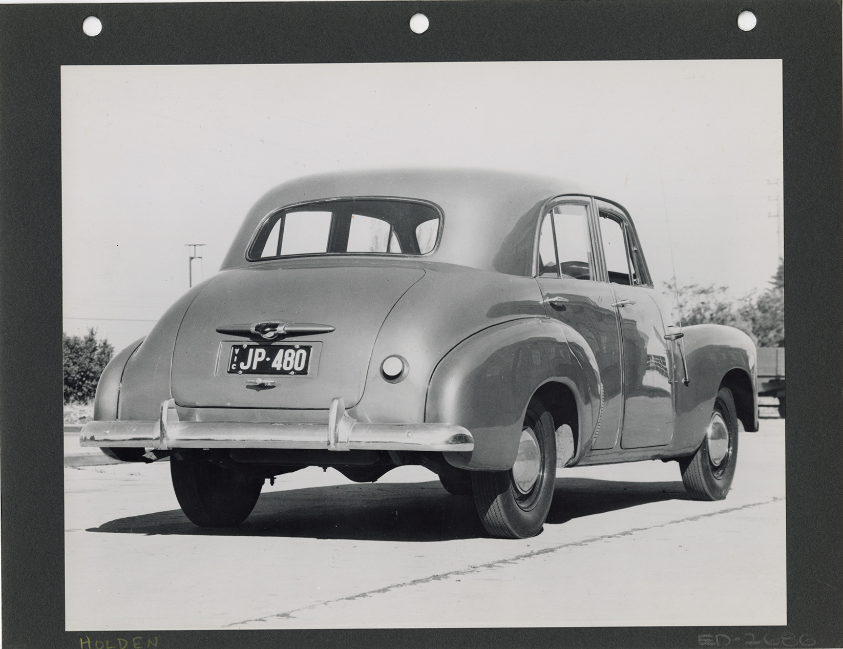 View of a Holden sedan. Handwritten on front: "Holden."