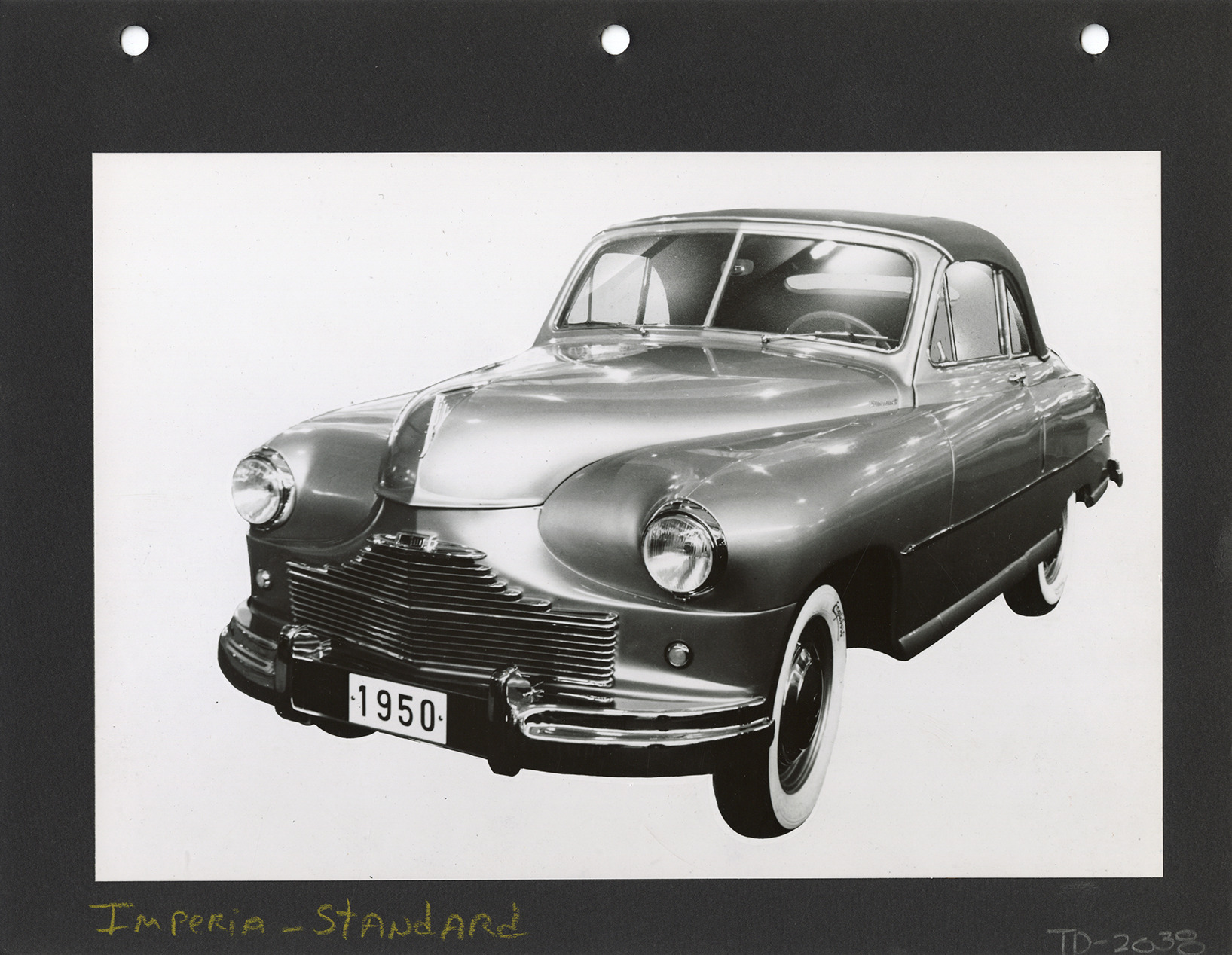 Favorite this☆ 1950 Imperia Standard automobile Description: View of a 1950 Imperia Standard car. Handwritten on front: "Imperia Standard." Handwritten on back: "3/50." Details Resource ID: na051685 Subject: Automobiles Automobiles Imperia Photographic prints Date Issued: 1950-03 Format: 1 photographic print mounted on stock ; image 6.5 x 9.5 in. Member of: National Automotive History Collection Filing Location: Imperia Rights: Physical rights are retained by DPL. Copyright is retained in accordance with U.S. copyright laws.