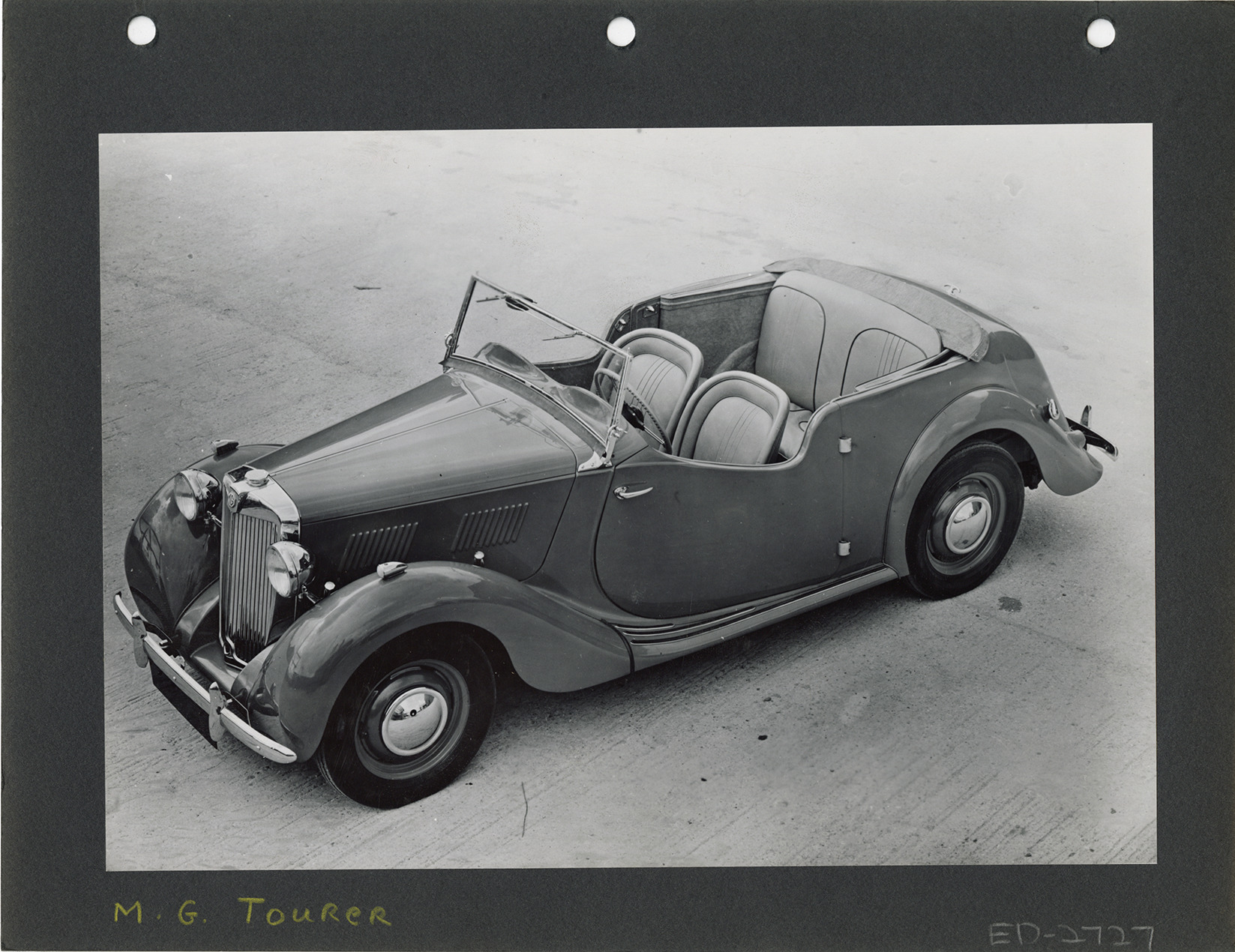 Favorite this☆ M.G. Tourer automobile Description: View of a M.G. Tourer car. Handwritten on front: "M.G. Tourer." Details Resource ID: na051688 Subject: M.G. automobiles Photographic prints Date Issued: Unknown year Format: 1 photographic print mounted on stock ; image 6.5 x 9.25 in. Member of: National Automotive History Collection Filing Location: MG Rights: Physical rights are retained by DPL. Copyright is retained in accordance with U.S. copyright laws.