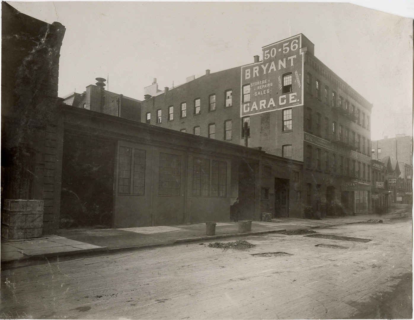 Favorite this☆ Bryant Garage Description: View at an angle of the Bryant Garage in New York City. Brick wall sign reads: "50-56 Bryant Garage, storage, repairs, sales, supplies, accessories." Handwritten on back: "50-56 W. 43rd St., New York." Details Resource ID: na051744 Subject: Garages--New York (State)--New York Automobile repair shops--New York (State)--New York Brick wall signs--New York (State)--New York Photographic prints Date Issued: Unknown year Format: 1 photographic print ; 7.25 x 9.25 in. Member of: National Automotive History Collection Lazarnick Collection Filing Location: Garages #1 Rights: Physical rights are retained by DPL. Copyright is retained in accordance with U.S. copyright laws.