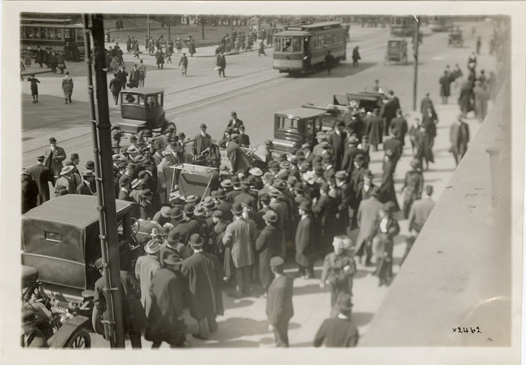 Favorite this☆ Crowd gathered around Brunn & Co. sheltered phaeton automobile Description: View of crowd of men gathered around a Brunn & Co. five-passenger sheltered phaeton in street. Streetcar in background. Details Resource ID: na051800 Subject: Automobiles--Michigan--Detroit Brunn & Co. Crowds--Michigan--Detroit Cable cars (Streetcars)--Michigan--Detroit Photographic prints Date Issued: Unknown year Format: 1 photographic print ; 5 x 7 in. Member of: National Automotive History Collection Lazarnick Collection Filing Location: Brunn Rights: Physical rights are retained by DPL. Copyright is retained in accordance with U.S. copyright laws.