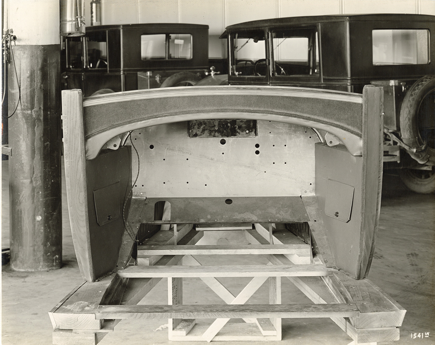 Favorite this☆ 1926 Hudson Super Six automobile body Description: Rear view of front end of the body of a 1926 Hudson Super Six car. Stamped on back: "Jeffery White Studio Inc., 243 West Congress St., Detroit, Mich. Commercial photo specialists." Handwritten on back: "Oct. 11/26. Full rear view Hudson body front." Details Resource ID: na051869 Creator: Jeffery White Studio Subject: Automobiles--Bodies Hudson automobile Photographers--Michigan--Detroit Photographic prints Date Issued: 1926-10-11 Format: 1 photographic print mounted on fabric ; 7.5 x 9.5 in. Member of: National Automotive History Collection Filing Location: Hudson--Special engineering projects Note (Content): Part of an album of photographs identified as Special Hudson-built cars; Book 5, Special engineering and experimental jobs Rights: Physical rights are retained by DPL. Copyright is retained in accordance with U.S. copyright laws.