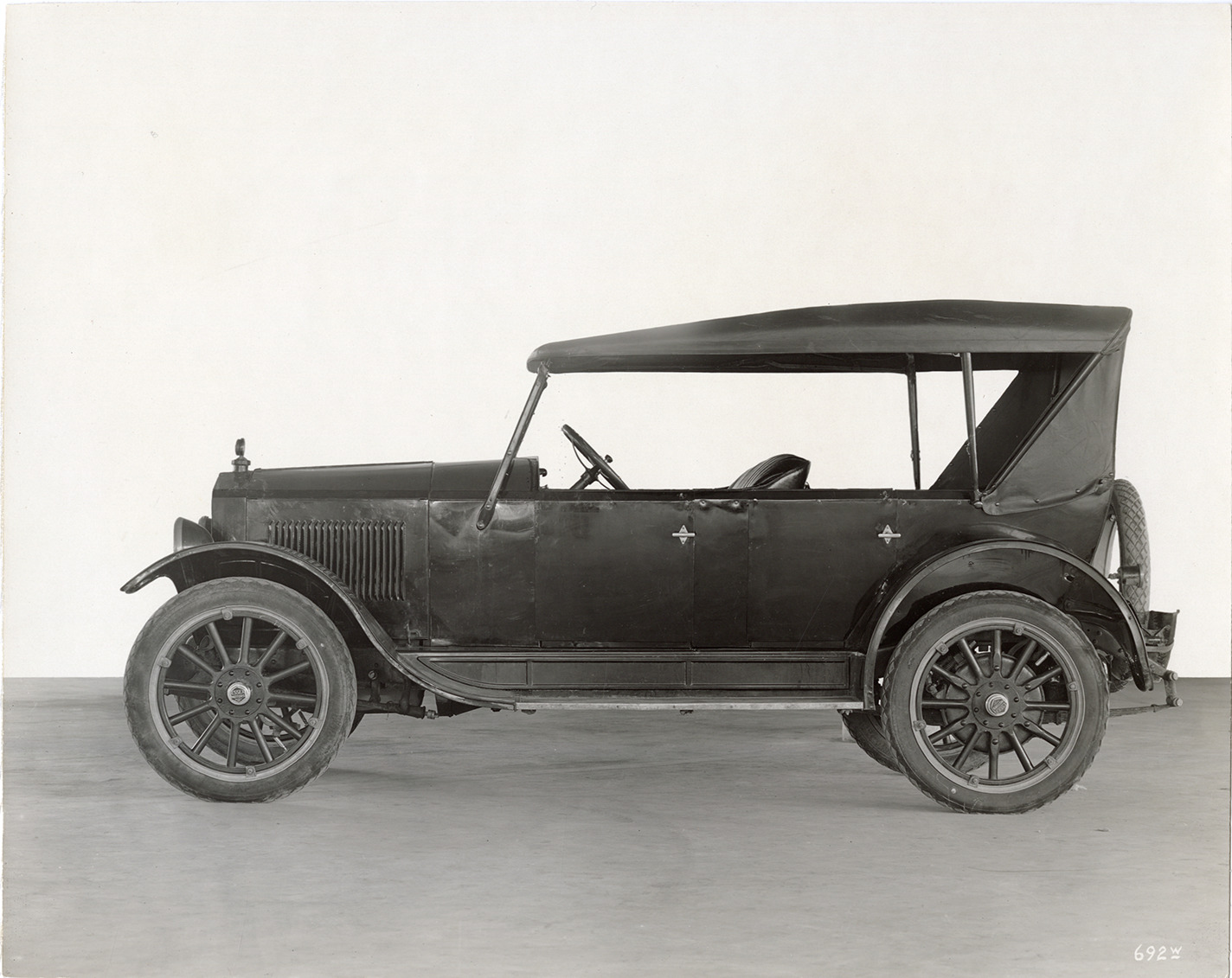 View of a Hudson touring car designed for Stephen Ivan Fekete, chief engineer for Hudson. Stamped on back: "Jeffery White Studio Inc., 243 West Congress St., Detroit, Mich. Commercial photo specialists." Typed on back: "Special jobs. Taken for Mr. Fekete, April 12, 1921."