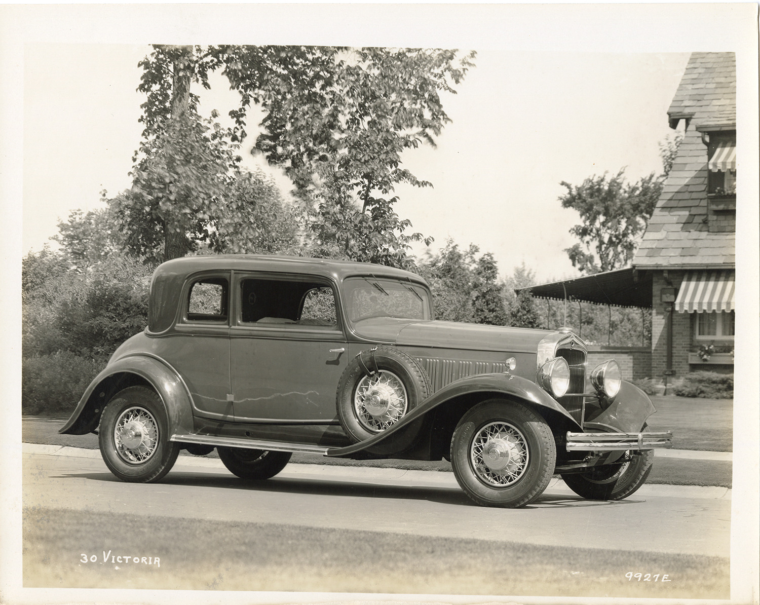 View of a 1932 Reo Royale victoria car. Printed on front: "30 victoria." Handwritten on back: "1932 Reo Royale victoria."