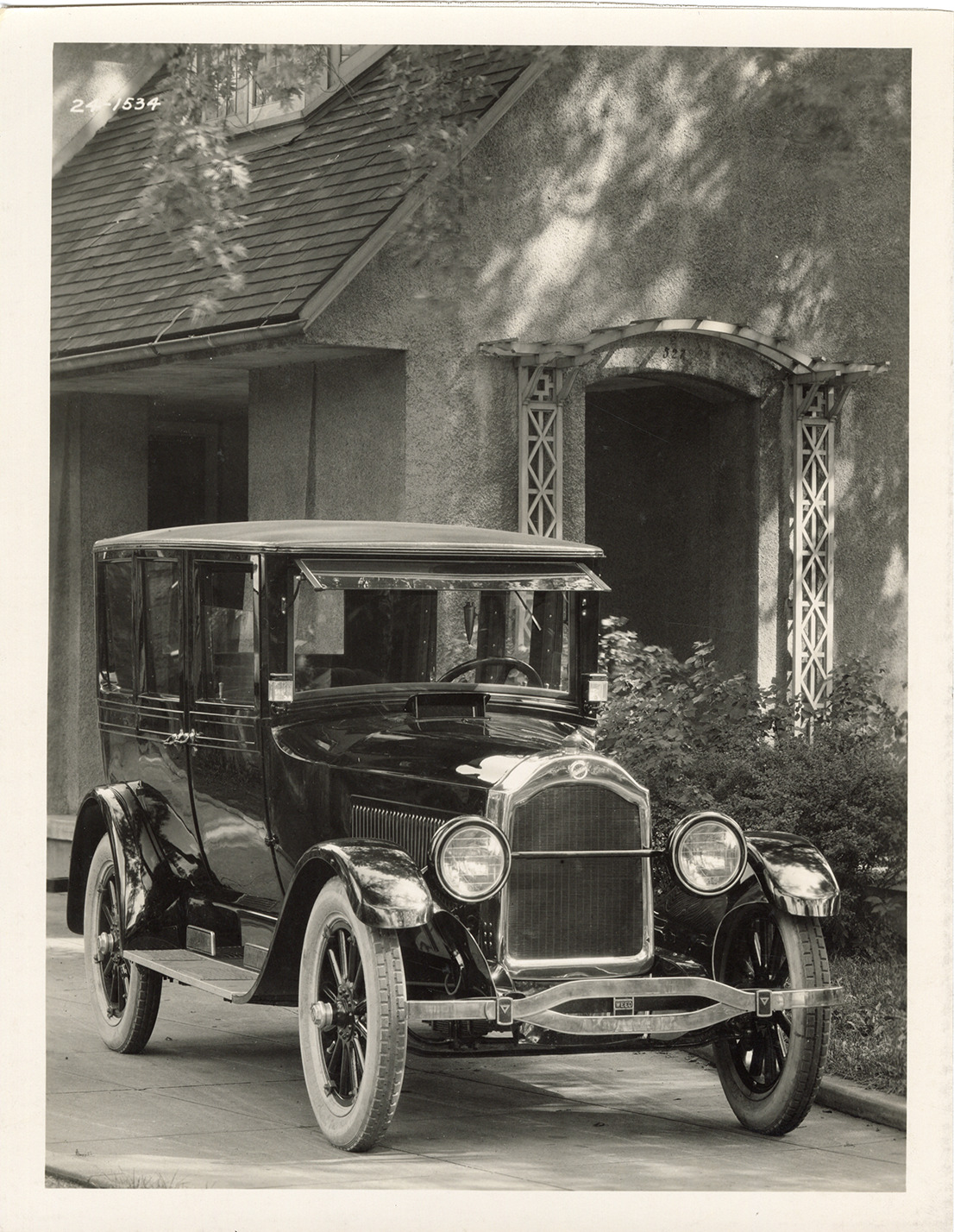 View of a 1924 Studebaker car. Handwritten on back: "1924 Studebaker."