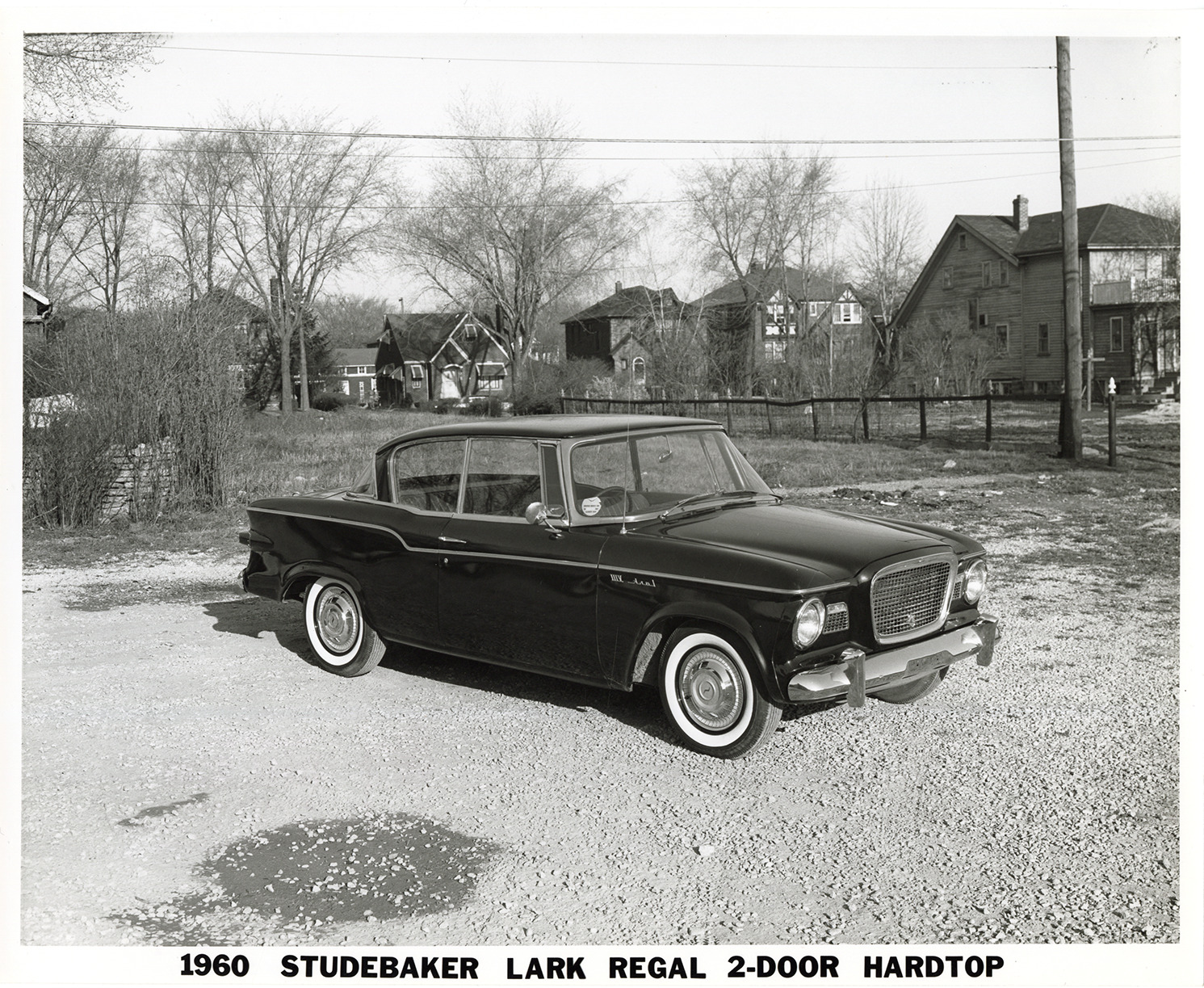 Favorite this☆ 1960 Studebaker Lark Regal automobile Description: View of a 1960 Studebaker Lark Regal coupe. Houses in background. Printed on front: "1960 Studebaker Lark Regal 2-door hardtop." Stamped on back: "Please credit Terry Thurn, photography. 9624 Lenore, UN. 4-5666. Detroit 39, Michigan." Handwritten on back: "1960 Lark Regal." Details Resource ID: na052257 Creator: Thurn, Terry Subject: Lark automobile Photographers--Michigan--Detroit Photographic prints Date Issued: Unknown year Format: 1 photographic print ; 8 x 10 in. Member of: National Automotive History Collection Filing Location: Studebaker Rights: Physical rights are retained by DPL. Copyright is retained in accordance with U.S. copyright laws.