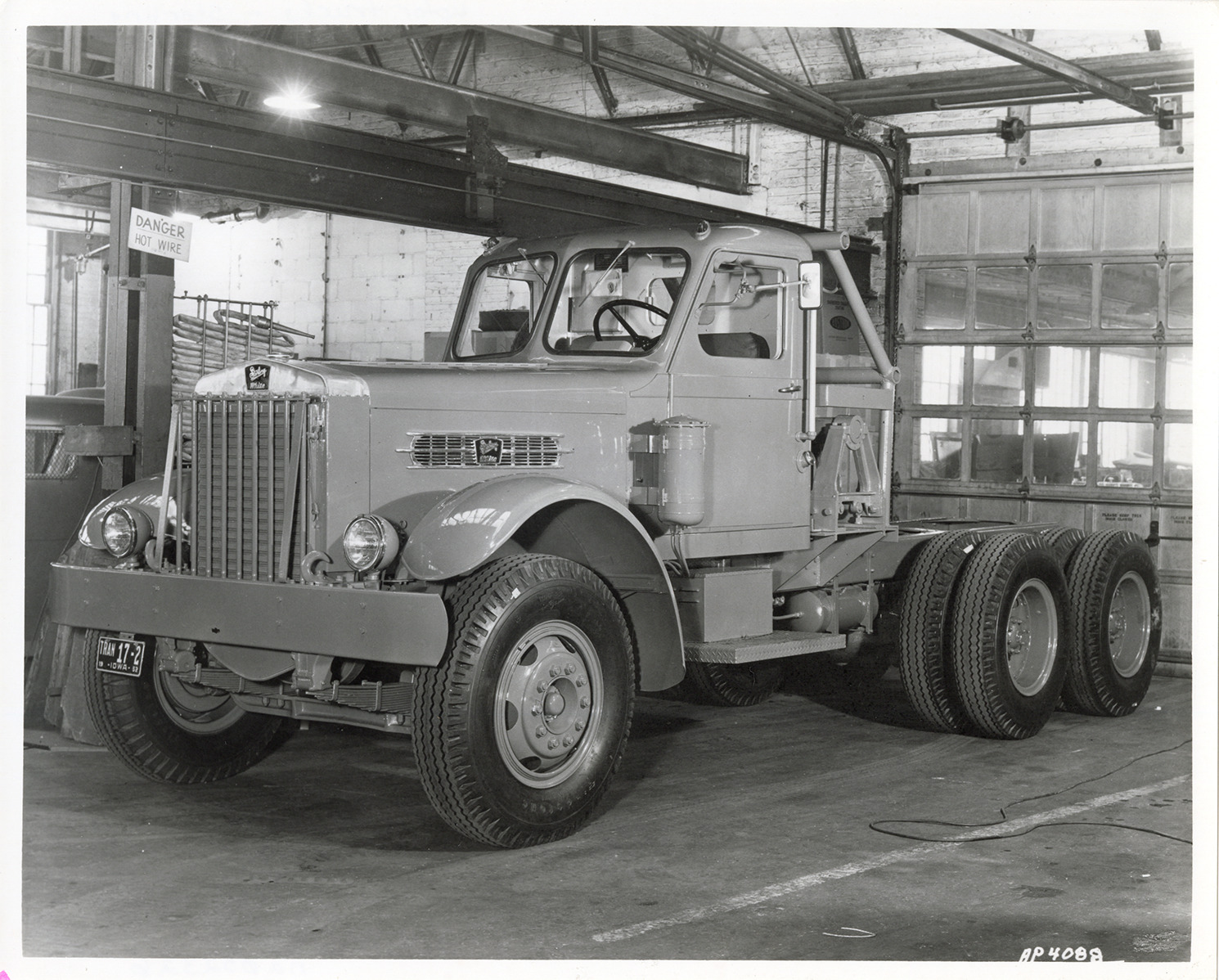 Favorite this☆ Sterling truck cab in garage Description: View of a Sterling truck cab in a garage. Garage door on right; "Danger, hot wire" sign in background. Details Resource ID: na052326 Subject: Sterling trucks Photographic prints Date Issued: Unknown year Format: 1 photographic print ; 8 x 10 in. Member of: National Automotive History Collection Filing Location: Motor trucks--Sterling Rights: Physical rights are retained by DPL. Copyright is retained in accordance with U.S. copyright laws.