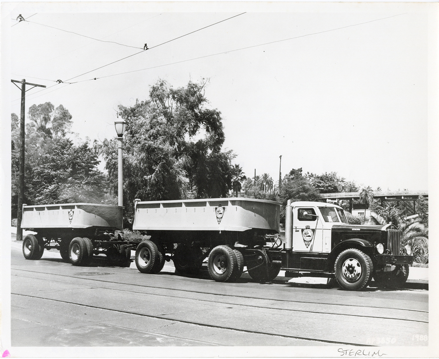 Favorite this☆ Sterling truck Description: View of a Sterling truck with Mojave logo on cab and trailers. Handwritten on front: "Sterling." Details Resource ID: na052332 Subject: Sterling trucks Truck trailers Photographic prints Date Issued: Unknown year Format: 1 photographic print ; 8 x 10 in. Member of: National Automotive History Collection Filing Location: Motor trucks--Sterling Rights: Physical rights are retained by DPL. Copyright is retained in accordance with U.S. copyright laws.