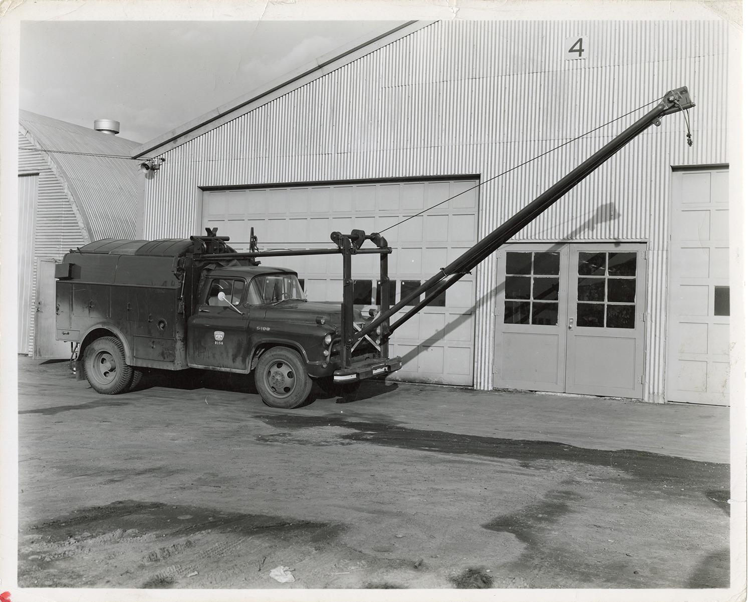 Favorite this☆ White truck with crane Description: View of a White truck with crane. Quonset huts in background. Details Resource ID: na052347 Subject: White trucks Truck-mounted cranes Quonset huts Photographic prints Date Issued: Unknown year Format: 1 photographic print ; 8 x 10 in. Member of: National Automotive History Collection Filing Location: Motor trucks--White Rights: Physical rights are retained by DPL. Copyright is retained in accordance with U.S. copyright laws.